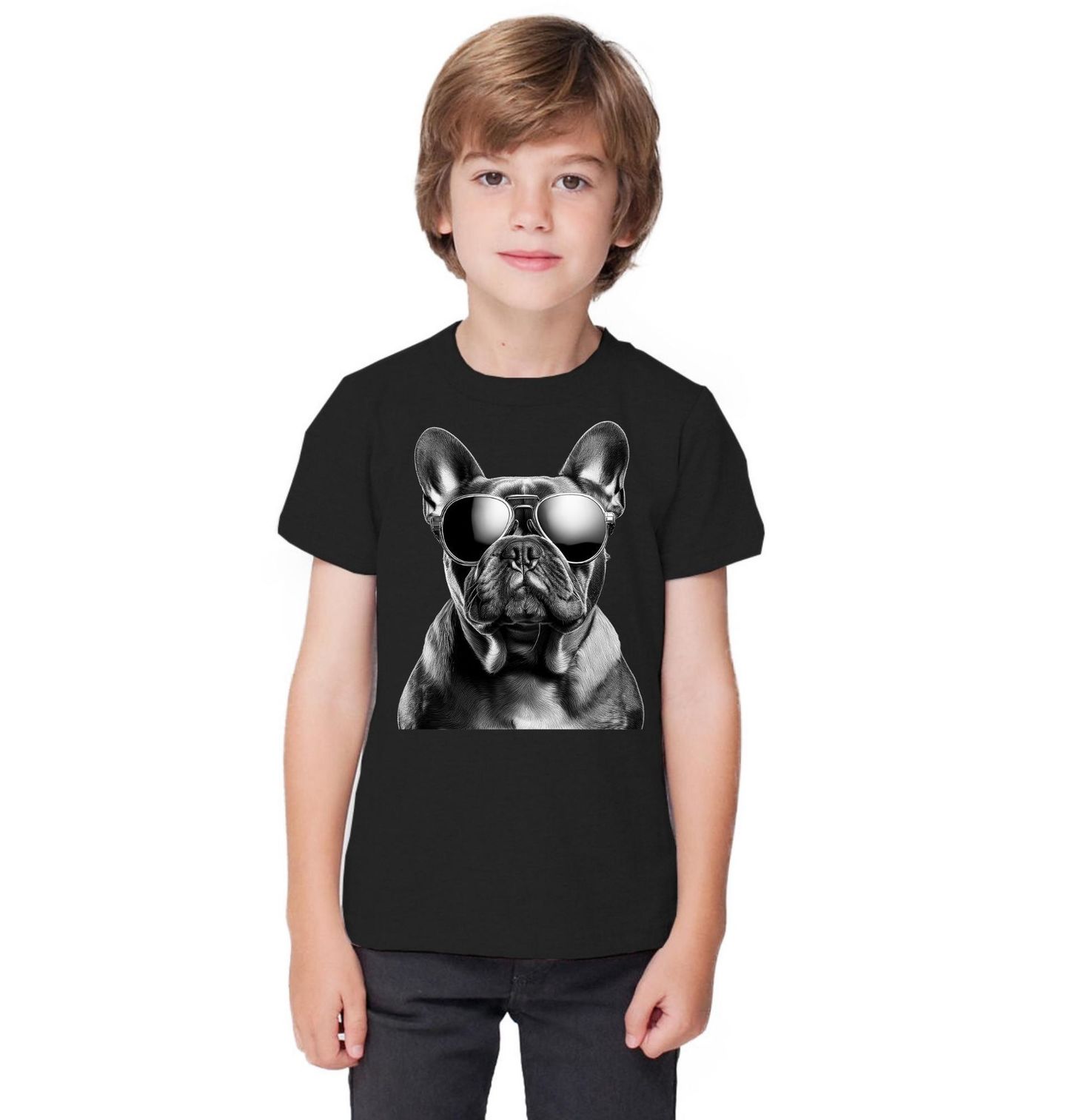 Dětské tričko Francouzský buldoček s Brýlemi. Originální motiv, na kterém vyniká Francouzský buldoček v moderních brýlích, zaujme každého milovníka psího stylu a humoru. Tento design spojuje roztomilost i osobitý výraz, díky čemuž je ideální pro každého, kdo je hrdý pejskař a pro koho je pes součást každodenního života. Francouzský buldoček patří mezi nejoblíbenější plemena a jeho ikonický vzhled dodává motivu jedinečný charakter.