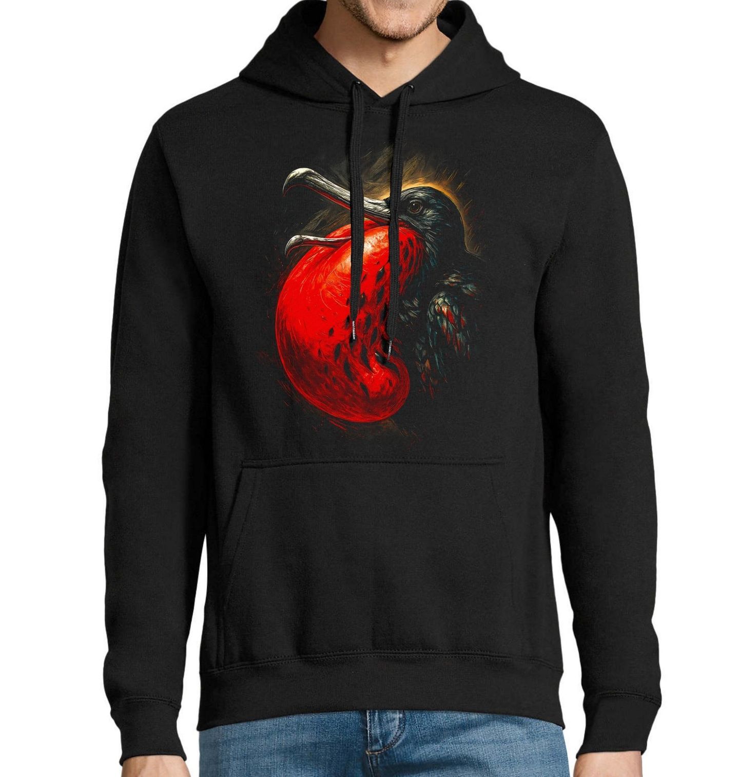 Pánská mikina Fregatka vznešená. Rod fregatka (Fregata) se dělí do pěti uznávaných druhů mořských ptáků z čeledi fregatkovití, které se vyznačují dlouhými křídly, vidlicovitým ocasem a u samců červeným hrdelním vakem. Jsou známé svým parazitickým chováním, kdy kradou potravu jiným ptákům, a výjimečnou obratností ve vzduchu.