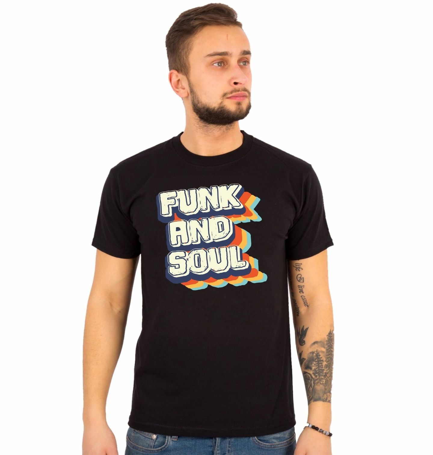 Pánské tričko Funky Vibe. Retro design plný barev a energie s výrazným textem “FUNK AND SOUL” (v překladu „Funk a duše“). Kombinace stylizovaného písma a barevných vln v pozadí evokuje hudební éru plnou rytmu, emocí a originality. Funk je hudební styl vytvořený Afroameričany v 60. letech 20. století. Předchůdcem funku byl soul.