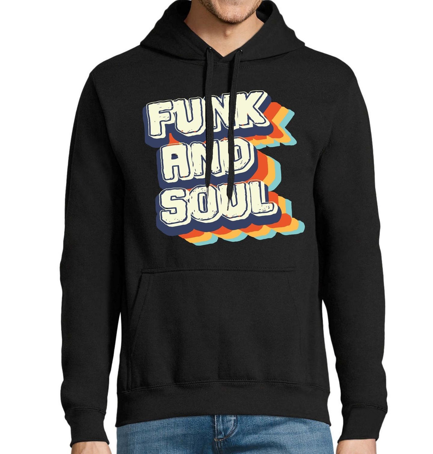 Pánská mikina Funky Vibe. Retro design plný barev a energie s výrazným textem “FUNK AND SOUL” (v překladu „Funk a duše“). Kombinace stylizovaného písma a barevných vln v pozadí evokuje hudební éru plnou rytmu, emocí a originality. Funk je hudební styl vytvořený Afroameričany v 60. letech 20. století. Předchůdcem funku byl soul.