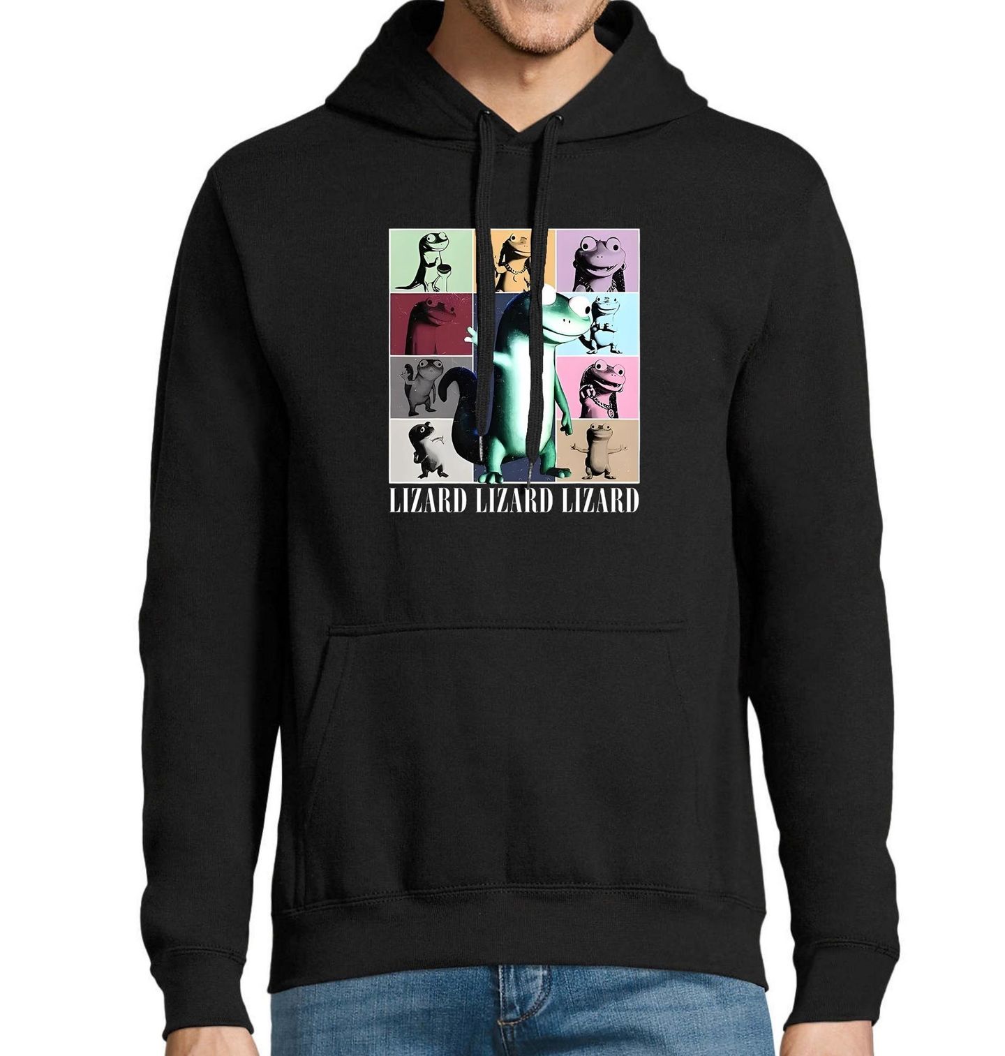 Pánská mikina Galerie Ještěrky Lizard. Tady je důkaz, že i lizard může mít víc osobností než většina lidí! Tento vtipný motiv přináší stylovou koláž plnou výrazů a póz roztomilé meme ještěrky, která si žije svůj nejlepší život. Ideální tričko pro fanoušky internetového humoru, kteří ocení ironii, absurditu a ikonický výraz "Lizard Lizard Lizard".