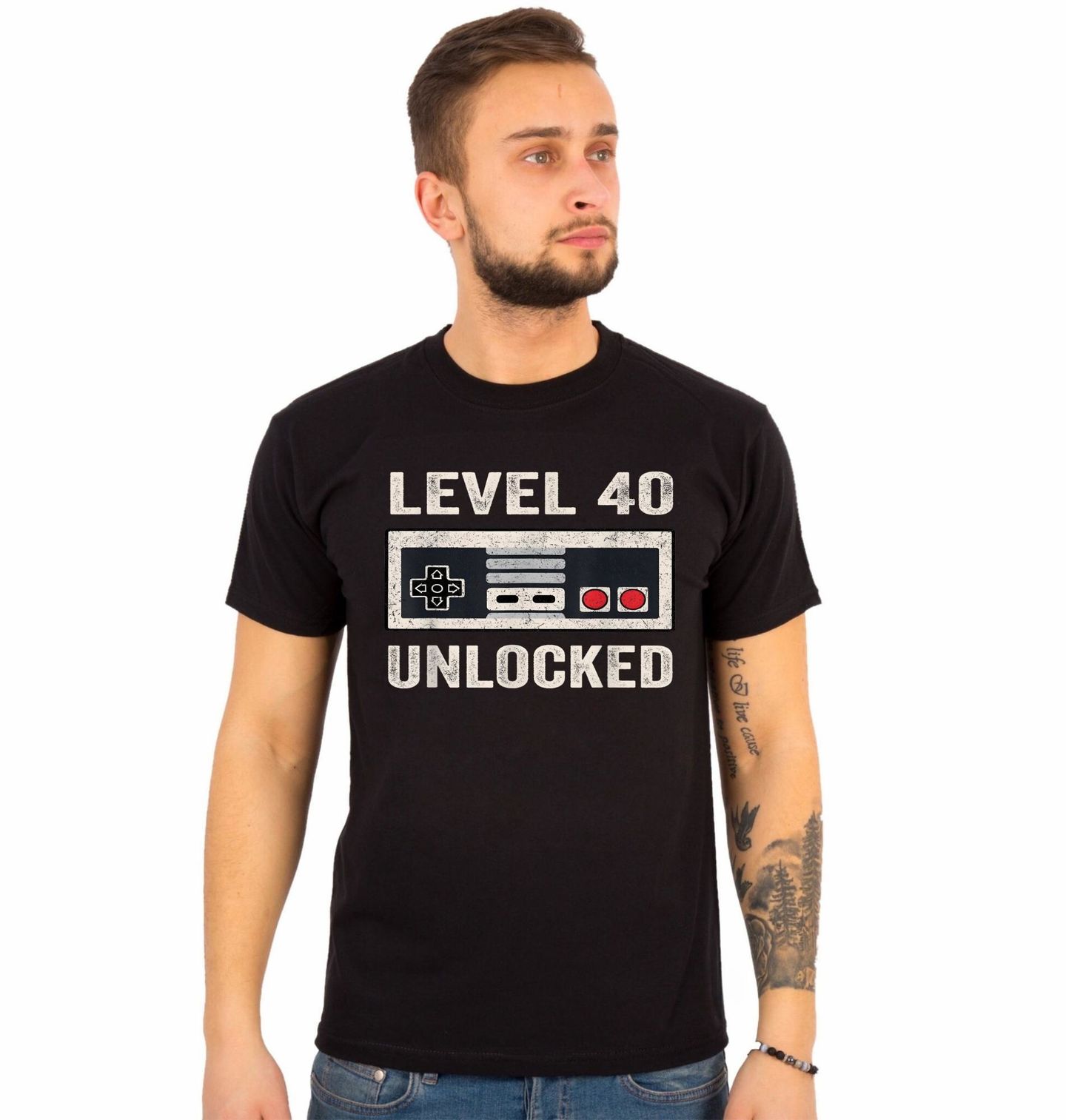 Pánské tričko Gamer 40. Kulatiny. „Level 40 Unlocked“ → „Úroveň 40 odemčena“ je perfektní dárek pro každého, kdo slaví 40. narozeniny a cítí se stále jako pravý hráč – nejen života, ale i herního světa. Retro herní ovladač odkazuje na klasické konzole a potěší každého gamera, který vyrůstal na 8bitové grafice.