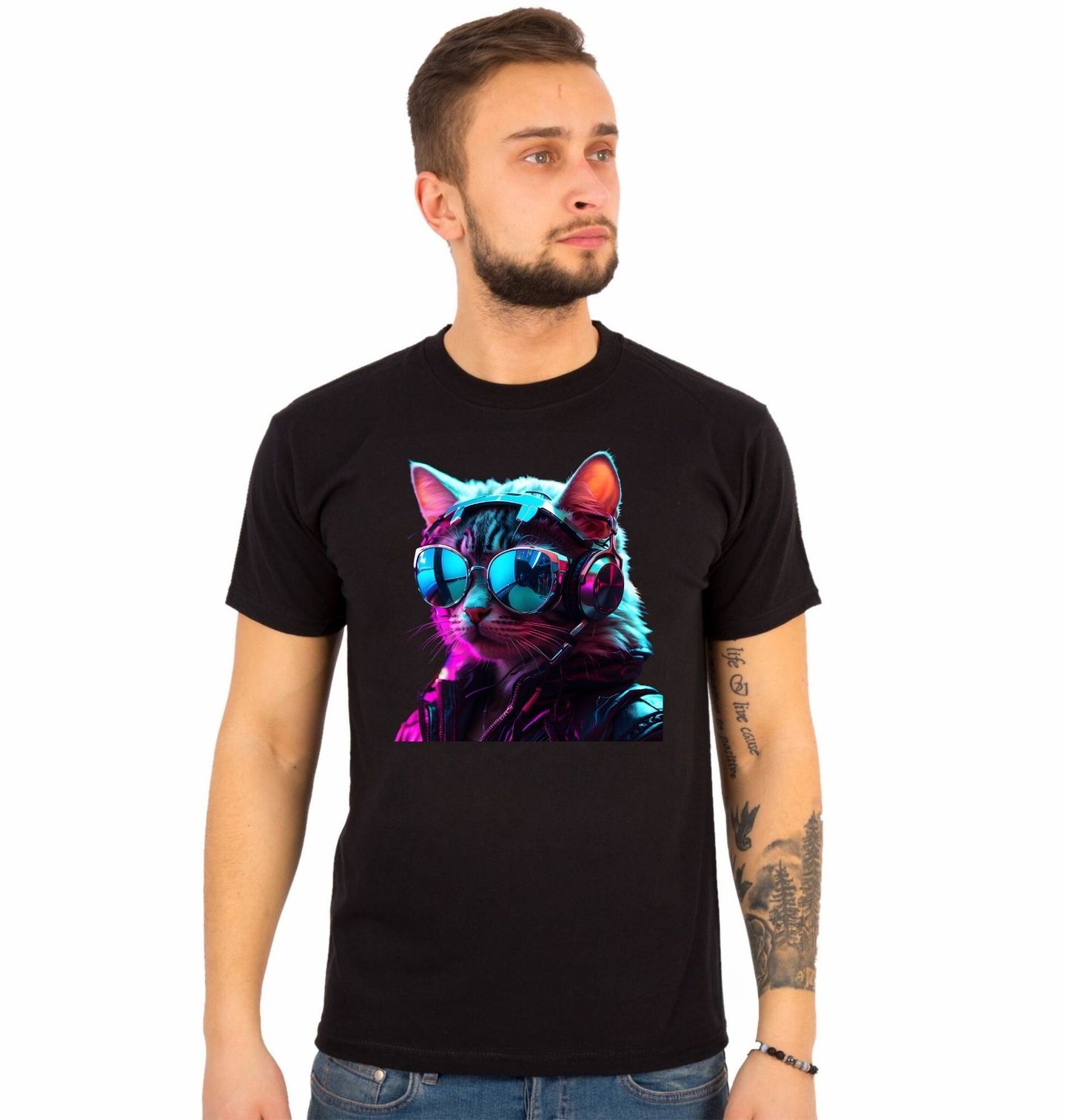 Pánské tričko Gamer Kočka se Sluchátky. Celý motiv působí futuristicky a dokonale vystihuje atmosféru herního prostředí. Detailní zpracování a kontrast světel dávají designu dynamiku a energii. Kočka zde představuje sebevědomí, styl a zábavu, zatímco gamer vibe osloví každého, kdo miluje hry, technologie a moderní estetiku.