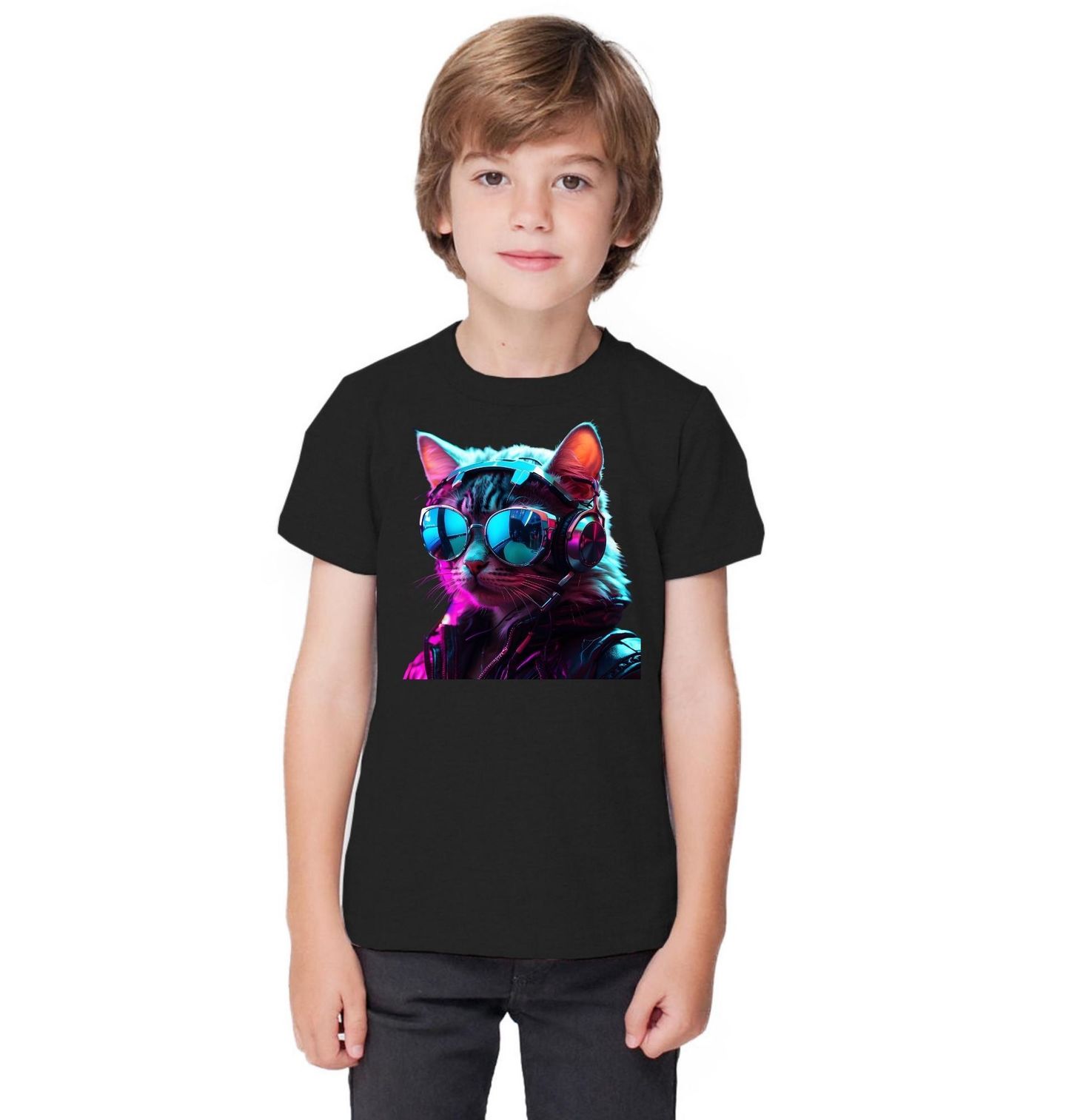 Dětské tričko Gamer Kočka se Sluchátky. Celý motiv působí futuristicky a dokonale vystihuje atmosféru herního prostředí. Detailní zpracování a kontrast světel dávají designu dynamiku a energii. Kočka zde představuje sebevědomí, styl a zábavu, zatímco gamer vibe osloví každého, kdo miluje hry, technologie a moderní estetiku.