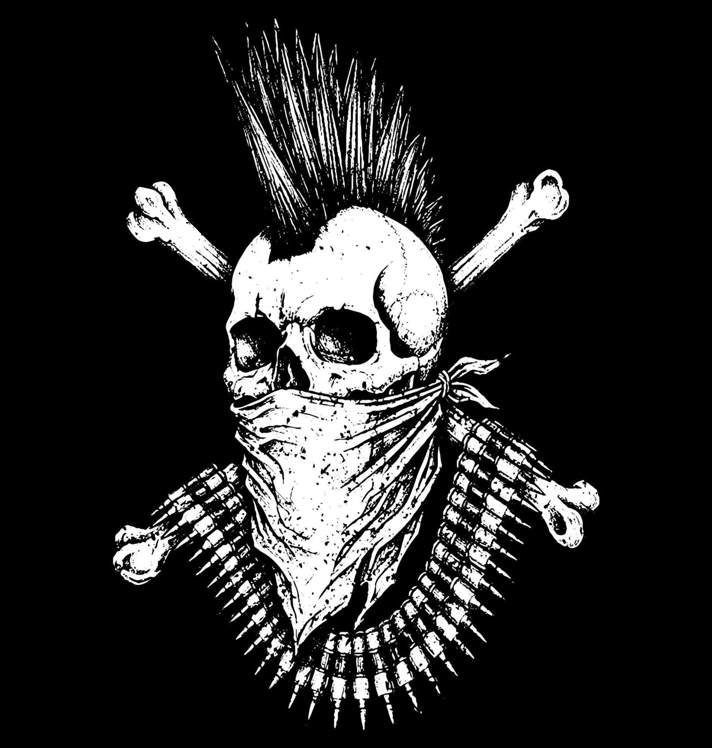 Dámské tričko Gangsta Pankáč. Výrazný motiv, kde hlavní roli hraje drsná lebka v typickém stylu pankáč, doplněná čírem, zkříženými kostmi a nábojnicemi. Tento design dokonale vystihuje rebelského ducha, odvahu a nezávislost. Kombinace punk estetiky a surových detailů dělá z tohoto motivu nepřehlédnutelný kousek pro každého, kdo jde proti proudu.