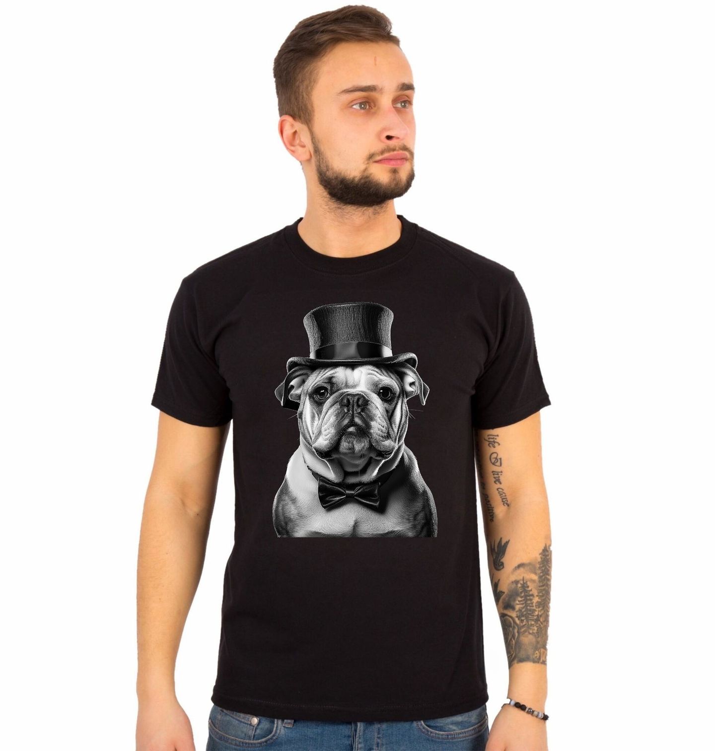 Pánské tričko Gentleman Anglický buldok. Tento výrazný pes působí noblesně a zároveň roztomile, takže skvěle ozdobí tričko, mikinu i další doplňky. Každý pravý pejskař ocení detailní zpracování a charakter plemene Anglický buldok, které dodává motivu osobitost a šmrnc. Skvělý tip na dárek pro milovníky psů i stylové outfity s psí tematikou.
