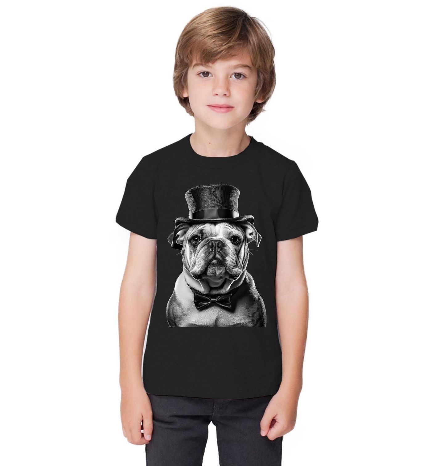 Dětské tričko Gentleman Anglický buldok. Tento výrazný pes působí noblesně a zároveň roztomile, takže skvěle ozdobí tričko, mikinu i další doplňky. Každý pravý pejskař ocení detailní zpracování a charakter plemene Anglický buldok, které dodává motivu osobitost a šmrnc. Skvělý tip na dárek pro milovníky psů i stylové outfity s psí tematikou.