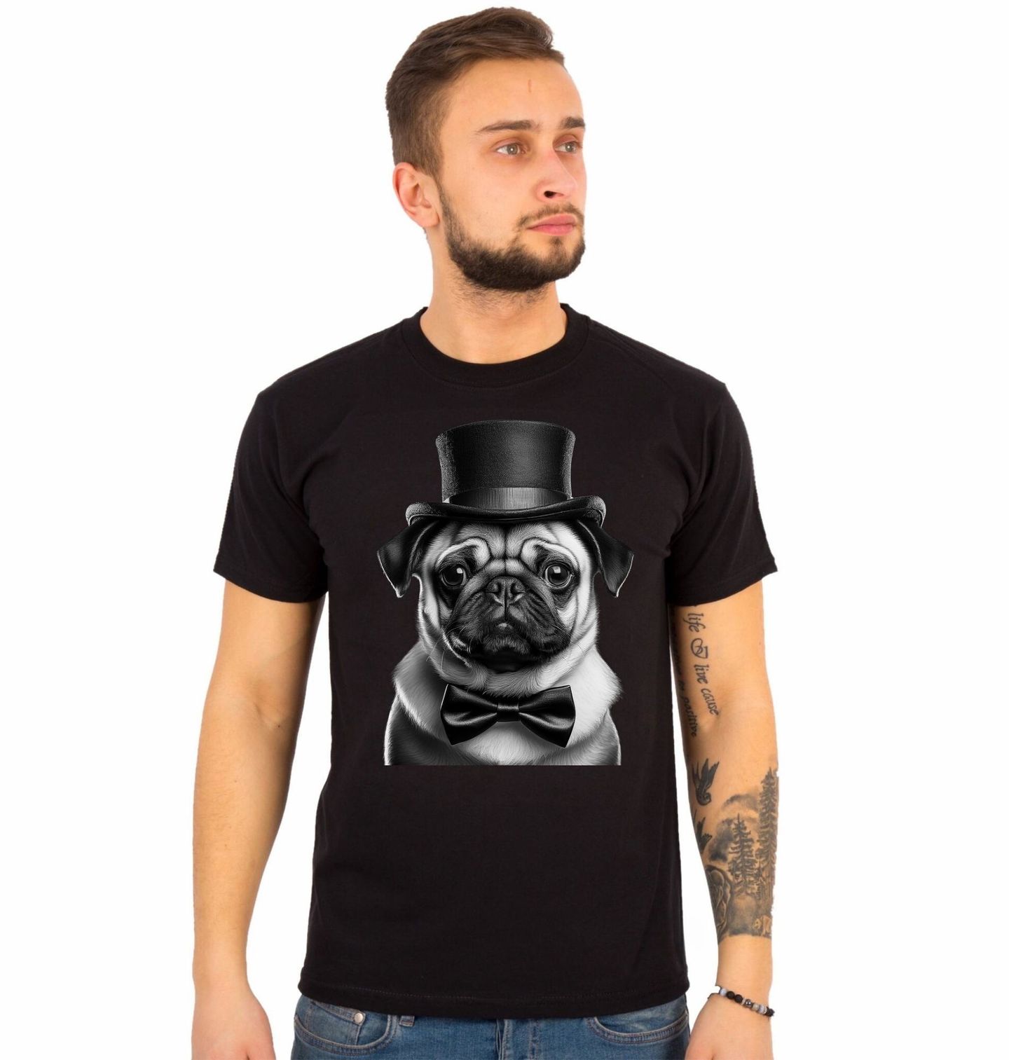 Pánské tričko Gentleman Mops. Originální motiv s plemenem Mops potěší každého, kdo miluje pes a chce dát světu najevo svůj jedinečný styl. Detailní zpracování zvýrazňuje typický výraz, velké oči a nezaměnitelný šarm, díky kterému je Mops oblíbený po celém světě. Tento design ocení každý pejskař, který hledá kombinaci roztomilosti a moderní grafiky. Motiv se hodí jako dárek i jako osobní radost pro každého, pro koho je pes součást života.