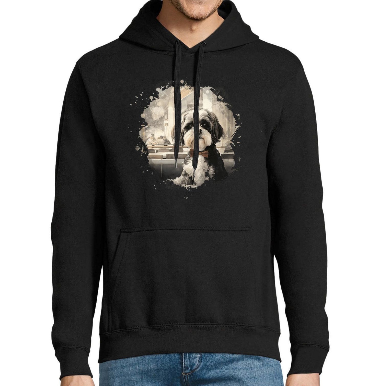 Pánská mikina Gentleman s Motýlkem Shih-tzu. Stylový, elegantní a s výrazem, který zahanbí i ty nejdražší obleky. Tento motiv zachycuje Shih-tzu jako pravého gentlemana městských kaváren. V hnědém motýlku a s noblesním postojem připomíná, že i pes může být dokonalým společníkem nejen pro pejskaře, ale i pro milovníky módy a vkusu.