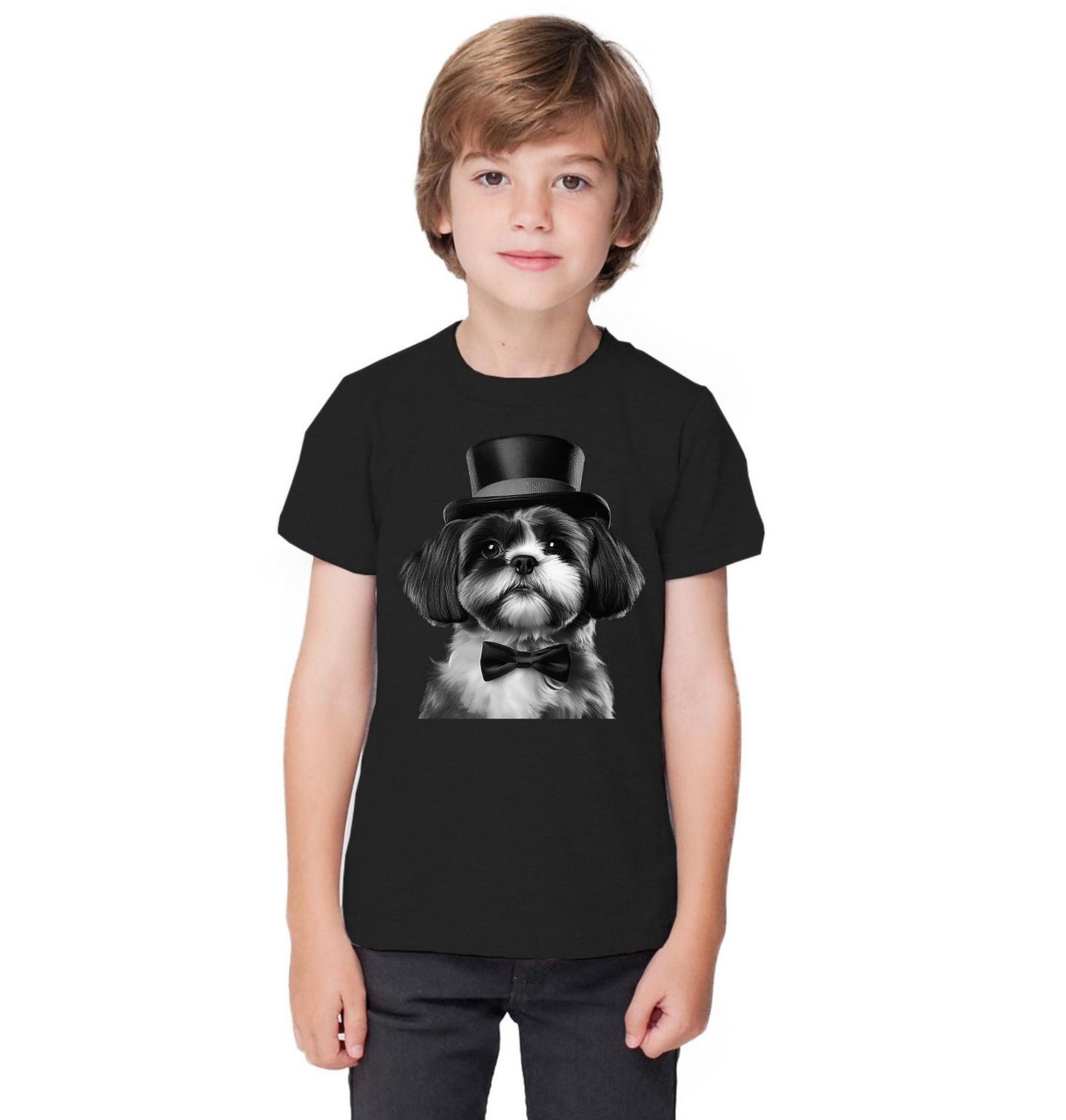Dětské tričko Gentleman Shih-tzu. Tento stylový pes působí jako malý elegán a zaujme každého, kdo miluje jedinečné psí motivy. Ideální volba pro každého pejskař, pro kterého je pes nejen parťákem, ale i součástí osobního stylu. Shih-tzu je známý svou přátelskou povahou, elegantním vzhledem a oddaností, což tento motiv krásně vystihuje. Perfektní dárek pro každého, kdo miluje pes a chce ukázat svou vášeň pro plemeno Shih-tzu s dávkou elegance.