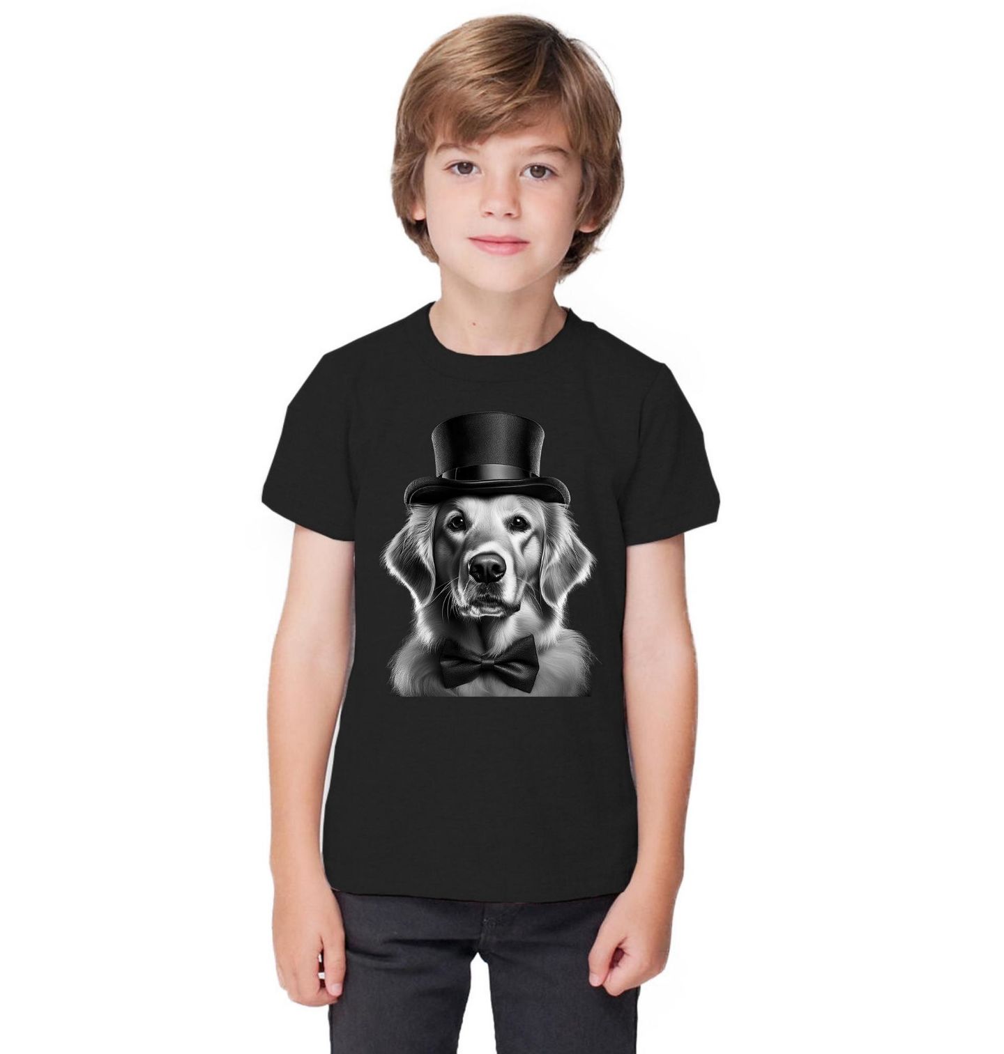 Dětské tričko Gentleman Zlatý retrívr. Tento stylový pes působí noblesně a zároveň přátelsky, což z něj dělá ideální design pro každého milovníka čtyřnohých parťáků. Každý pejskař, který miluje plemeno zlatý retrívr, ocení jedinečný vzhled a vtipnou eleganci motivu. Skvělé jako dárek nebo jako výraz osobního stylu pro všechny, pro které je pes součást rodiny a každodenní radost.