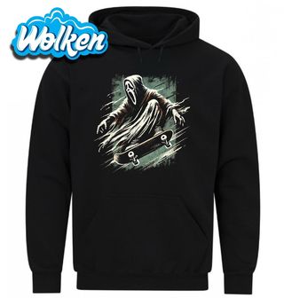 Pánská mikina Ghostface na Skateboardu. Tento "duch" připomíná slavnou masku Ghostface ze série hororových filmů Scream (česky Vřískot), ovšem tady stylově brázdí ulice na skateu! Perfektní volba pro všechny milovníky skateboardingu, street stylu, hororů a černého humoru. Skvělé na skate session, párty i běžné nošení.