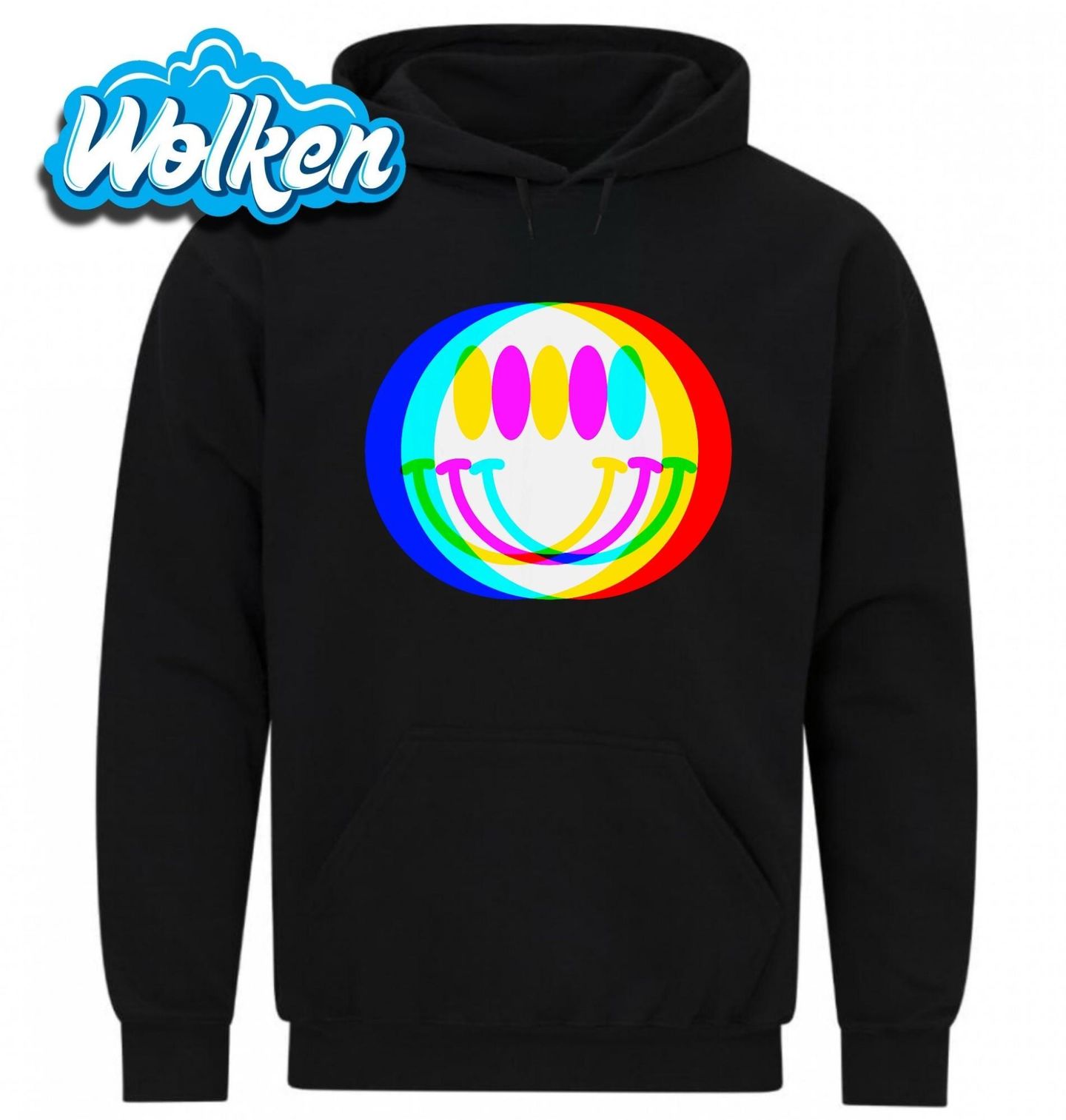 Pánská mikina Glitch Smajlík Happy Emoji. Kombinace výrazných barev, optického efektu chyby (glitch) a ikonického emoji vytváří originální a moderní design, který zaujme na první pohled. Barevný smajlík jako emoji působí vtipně i stylově – ideální do města, na párty nebo jako cool dárek. Přidej do šatníku dávku digitálního chaosu!