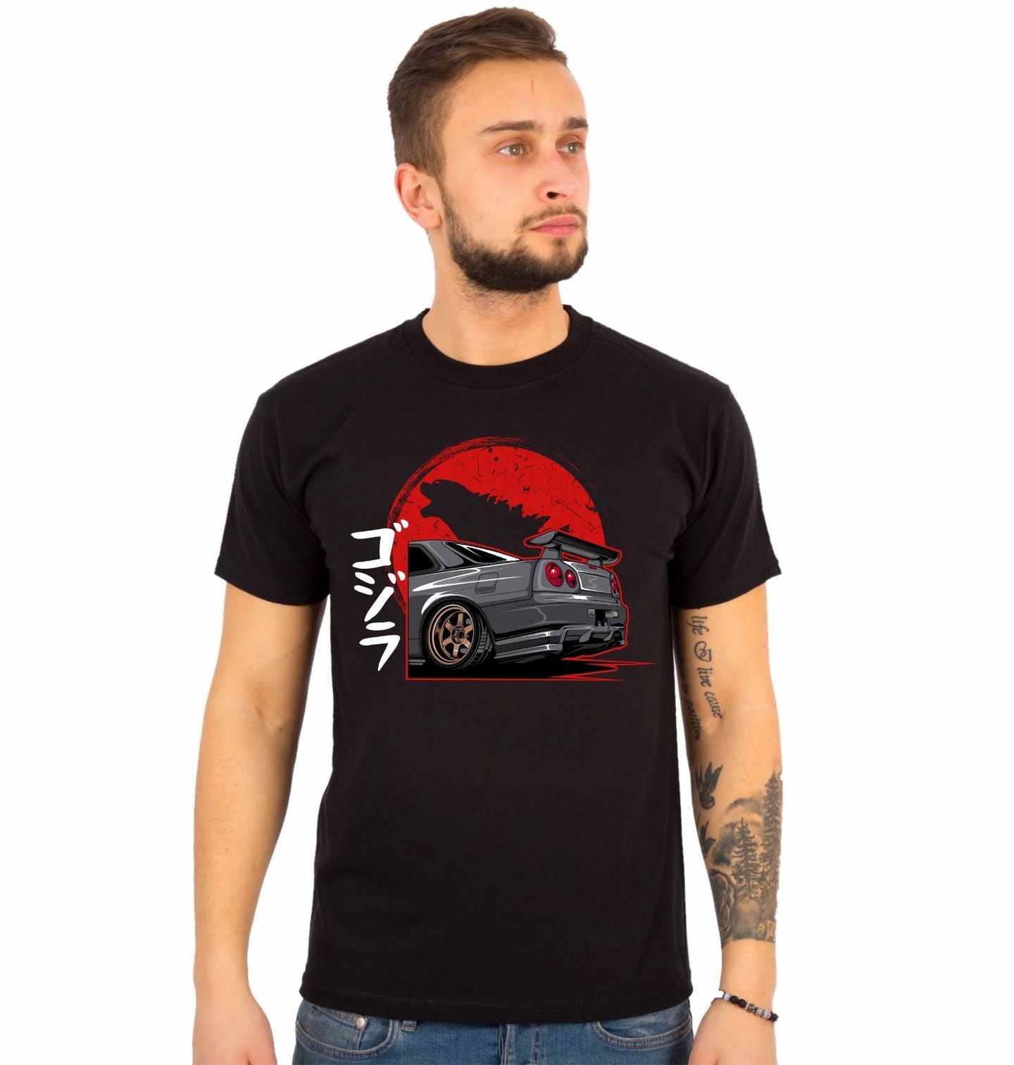 Pánské tričko Godzila Skyline. Na ilustraci je Nissan Skyline GT-R R34, sportovní vůz vyráběný v Japonsko na konci 90. let a začátku roku 2000. Přezdívku „godzila“ získal díky své dominanci na závodních tratích a extrémnímu výkonu, který překvapil celý svět. Pokud miluješ rychlé auto, výkon a atmosféru, kterou přináší Japonsko, tento motiv je ideální volba pro každodenní nošení i sběratelskou vášeň.