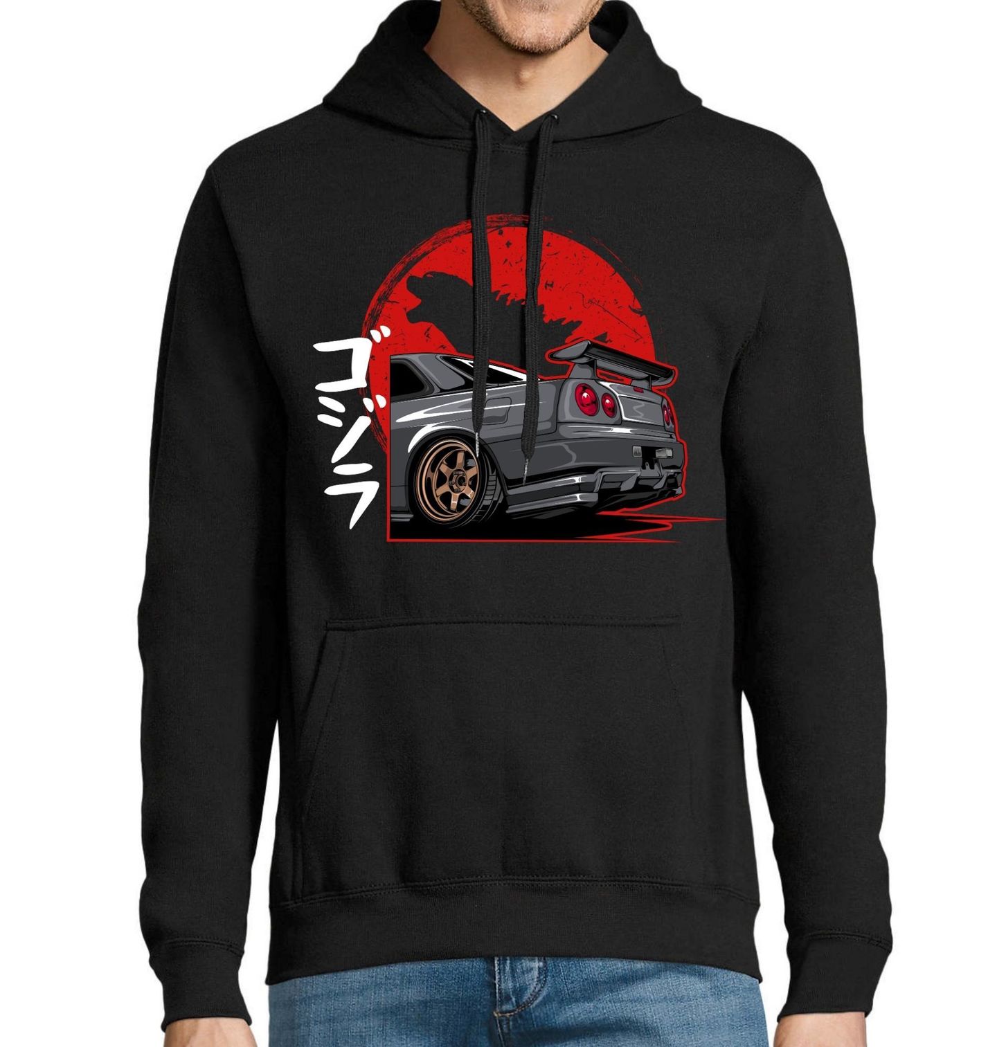 Pánská mikina Godzila Skyline. Na ilustraci je Nissan Skyline GT-R R34, sportovní vůz vyráběný v Japonsko na konci 90. let a začátku roku 2000. Přezdívku „godzila“ získal díky své dominanci na závodních tratích a extrémnímu výkonu, který překvapil celý svět. Pokud miluješ rychlé auto, výkon a atmosféru, kterou přináší Japonsko, tento motiv je ideální volba pro každodenní nošení i sběratelskou vášeň.