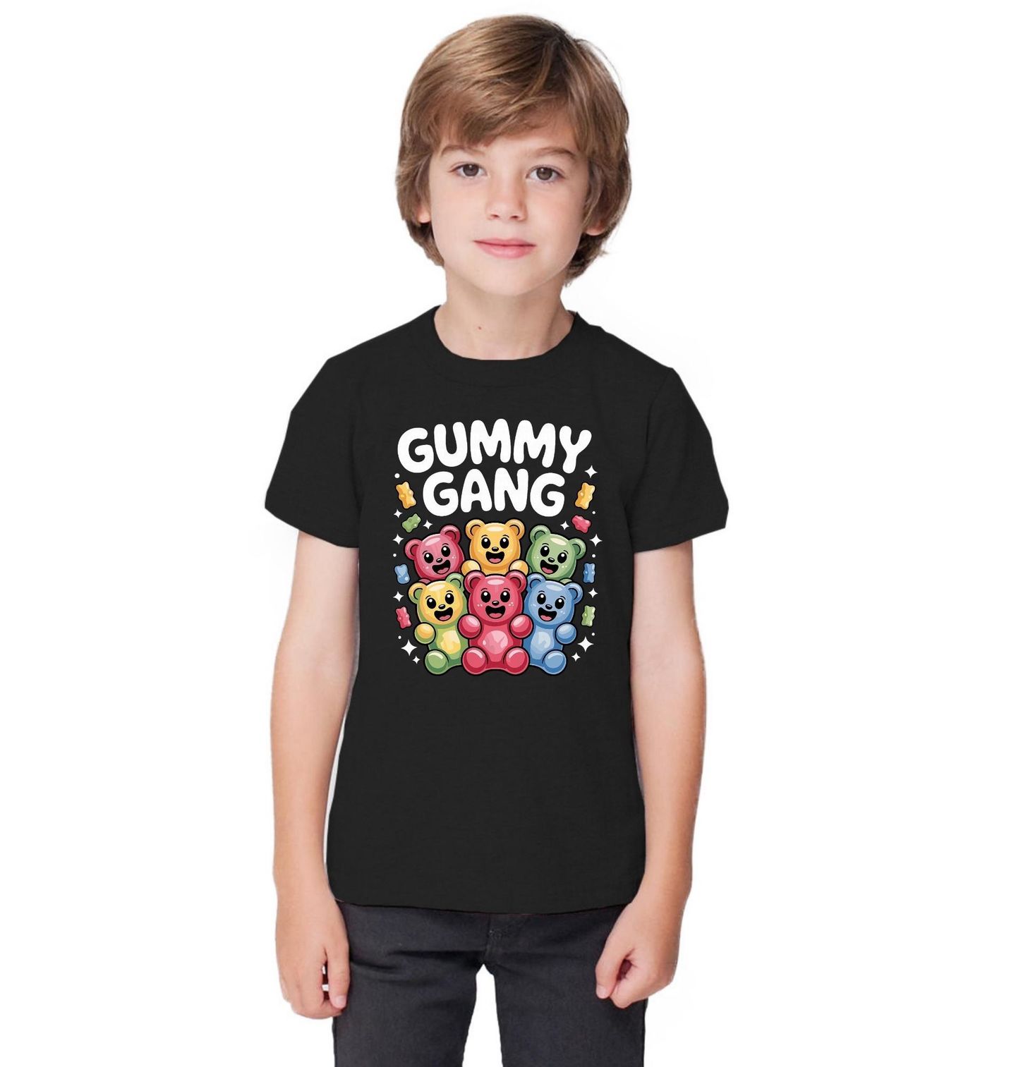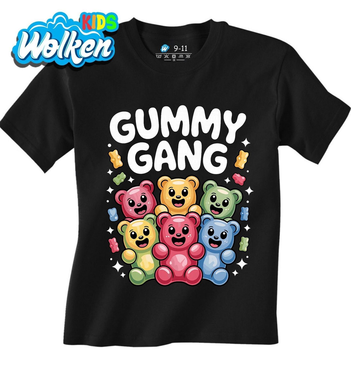 Dětské tričko Gumový Medvídci Gummy Gang. Vstup do světa sladkostí, kde vládne parta barevných roztomiláků – gumový medvěd v každé barvě duhy! Tento veselý a barevný motiv „Gummy Gang“ je ideální pro každého, kdo miluje hravý styl, sladké motivy a chce ukázat, že medvěd nemusí být jen plyšový.