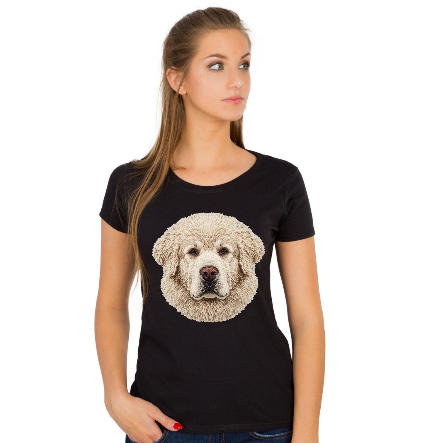Dámské tričko Háčkovaná Bílá Tibetská doga. Motiv je vytištěný potiskem – nejedná se o výšivku ani háčkovaný 3D prvek! Pes jako tibetská doga symbolizuje věrnost a ochranu, proto je motiv skvělou volbou pro každého pejskař, který chce ukázat svou lásku k velkým a výjimečným psům. Stylový design se hodí na každodenní nošení i jako originální dárek pro všechny, kdo ví, že pes není jen společník, ale skutečný parťák do života.