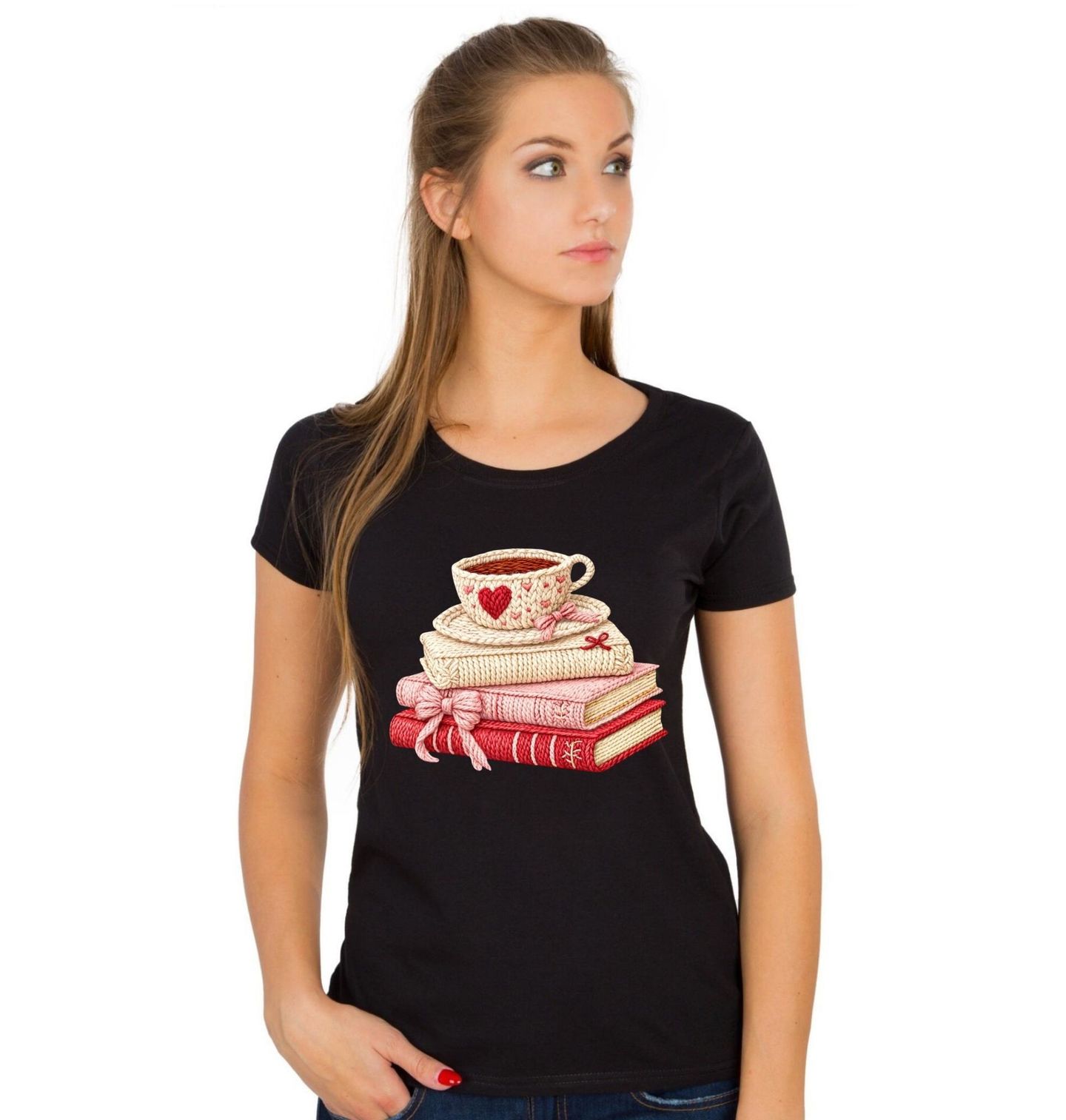 Dámské tričko Háčkované Knihy s Šálkem Kávy