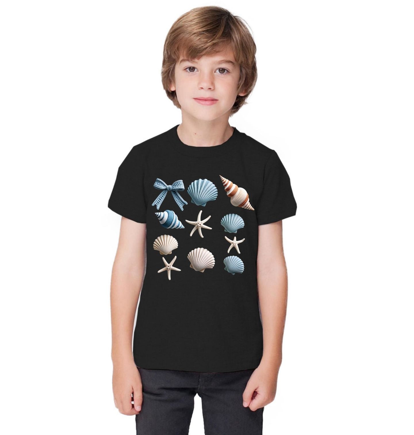 Dětské tričko Háčkované Mušle. Motiv je vytištěný potiskem – nejedná se o výšivku ani háčkovaný 3D prvek! Design je laděný do pastelových tónů a připomíná poklady nalezené na pláži – hvězdice, lastury i dekorativní mašle. Pokud hledáš motiv, který propojuje klidné moře a detailní ilustraci, tahle mušle je ideální volbou pro všechny, kdo milují lehkost a prázdninovou náladu.