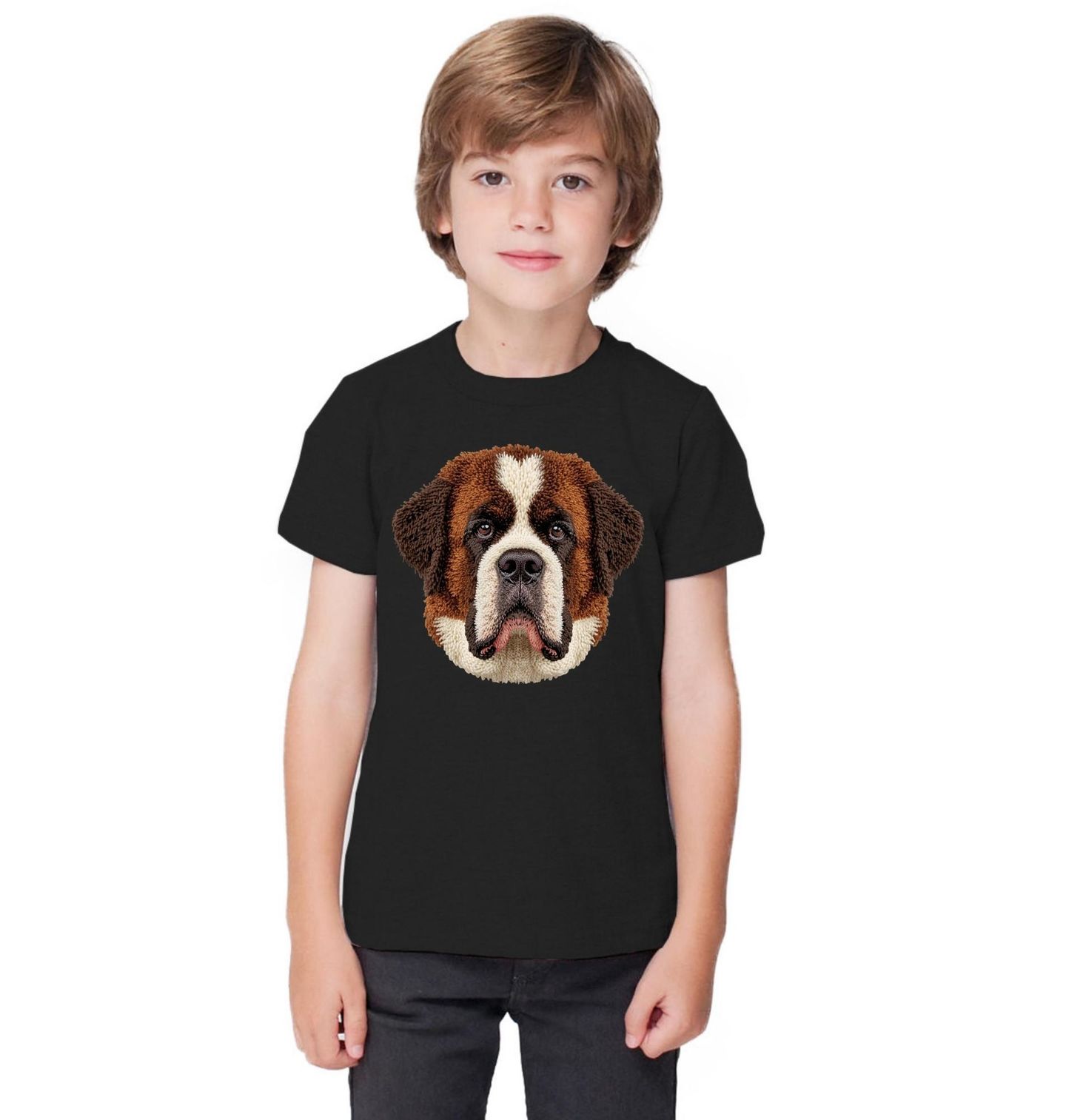 Dětské tričko Háčkovaný Bernardýn. Motiv je vytištěný potiskem – nejedná se o výšivku ani háčkovaný 3D prvek! Skvělá volba pro každého, kdo chce ukázat svou lásku ke psům a zároveň nosit něco originálního. Pokud je pro tebe pes víc než jen zvíře a každý pejskař ví, jak silné pouto může vzniknout, pak je tento motiv Bernardýna přesně pro tebe.