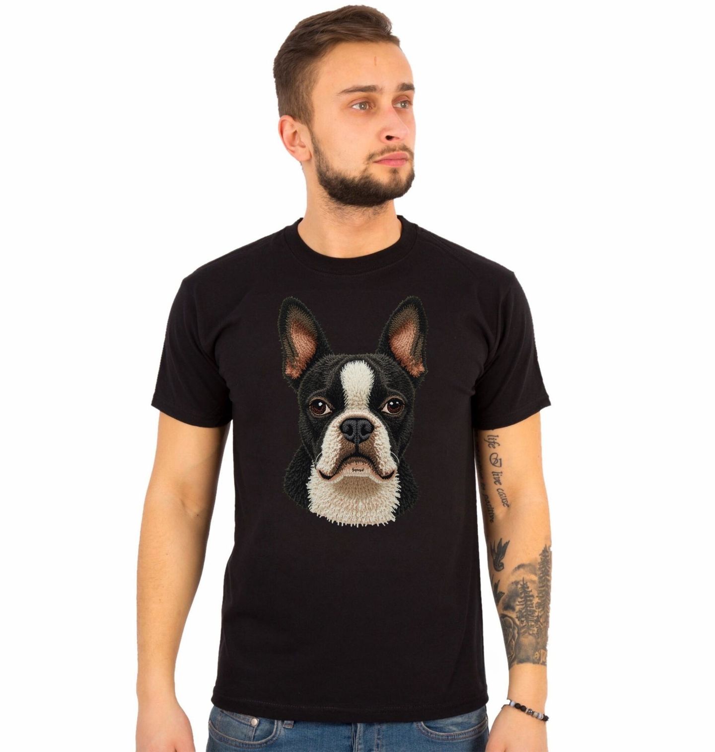 Pánské tričko Háčkovaný Bostonský teriér. Motiv je vytištěný potiskem – nejedná se o výšivku ani háčkovaný 3D prvek! Design je ideální pro každého, kdo je hrdý pejskař a chce ukázat svou lásku k tomuto jedinečnému plemeni stylovou formou. Pes v moderním zpracování dodá produktu osobitý charakter a hodí se jako originální dárek pro všechny, kteří milují čtyřnohé parťáky a ocení nápaditý motiv s Bostonským teriérem.