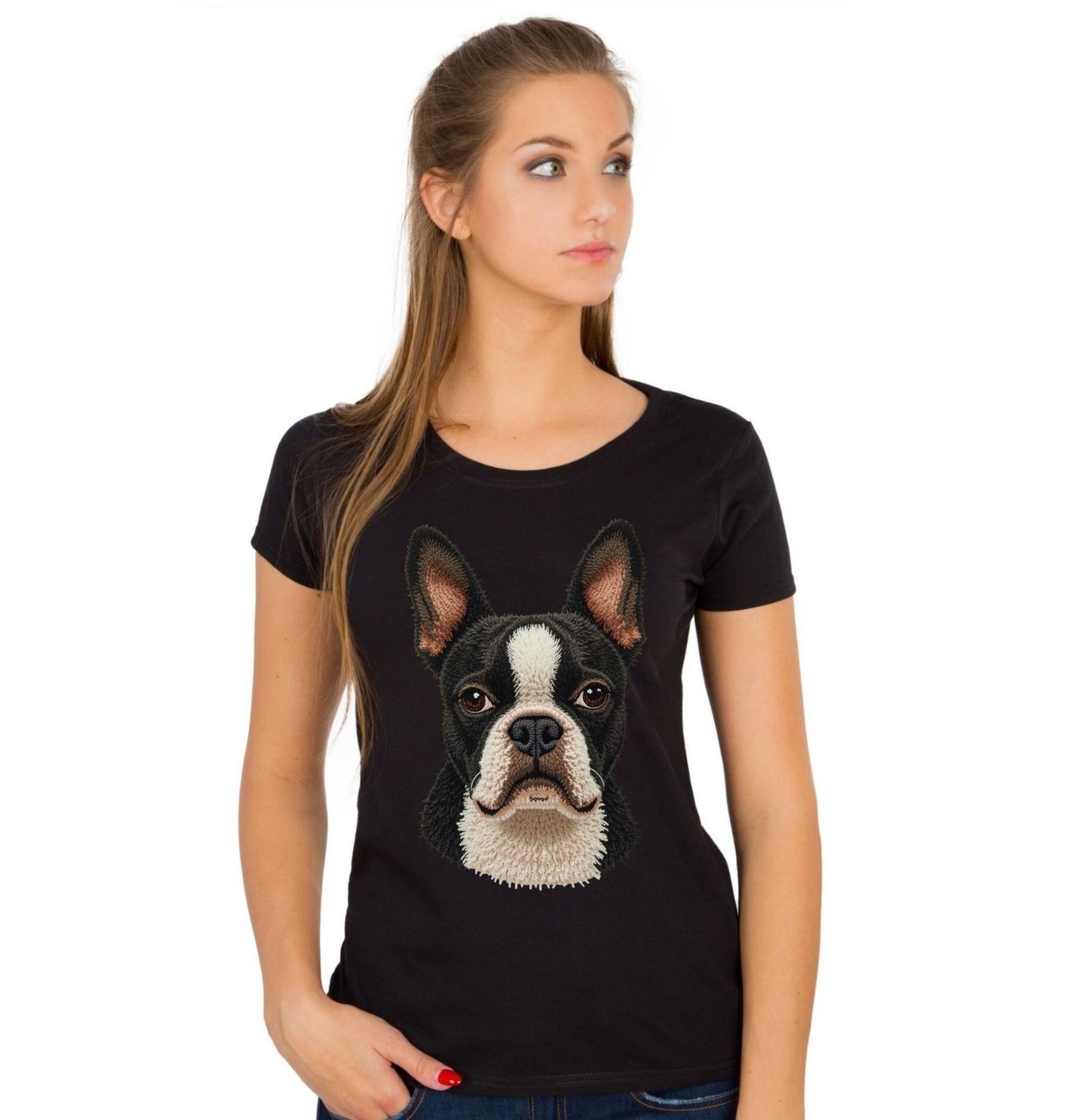 Dámské tričko Háčkovaný Bostonský teriér. Motiv je vytištěný potiskem – nejedná se o výšivku ani háčkovaný 3D prvek! Design je ideální pro každého, kdo je hrdý pejskař a chce ukázat svou lásku k tomuto jedinečnému plemeni stylovou formou. Pes v moderním zpracování dodá produktu osobitý charakter a hodí se jako originální dárek pro všechny, kteří milují čtyřnohé parťáky a ocení nápaditý motiv s Bostonským teriérem.