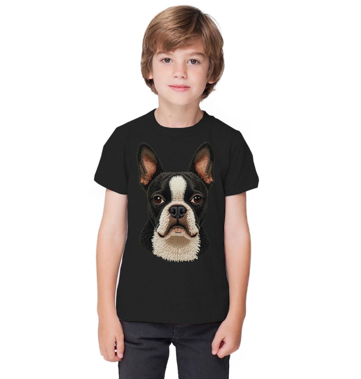 Dětské tričko Háčkovaný Bostonský teriér. Motiv je vytištěný potiskem – nejedná se o výšivku ani háčkovaný 3D prvek! Design je ideální pro každého, kdo je hrdý pejskař a chce ukázat svou lásku k tomuto jedinečnému plemeni stylovou formou. Pes v moderním zpracování dodá produktu osobitý charakter a hodí se jako originální dárek pro všechny, kteří milují čtyřnohé parťáky a ocení nápaditý motiv s Bostonským teriérem.