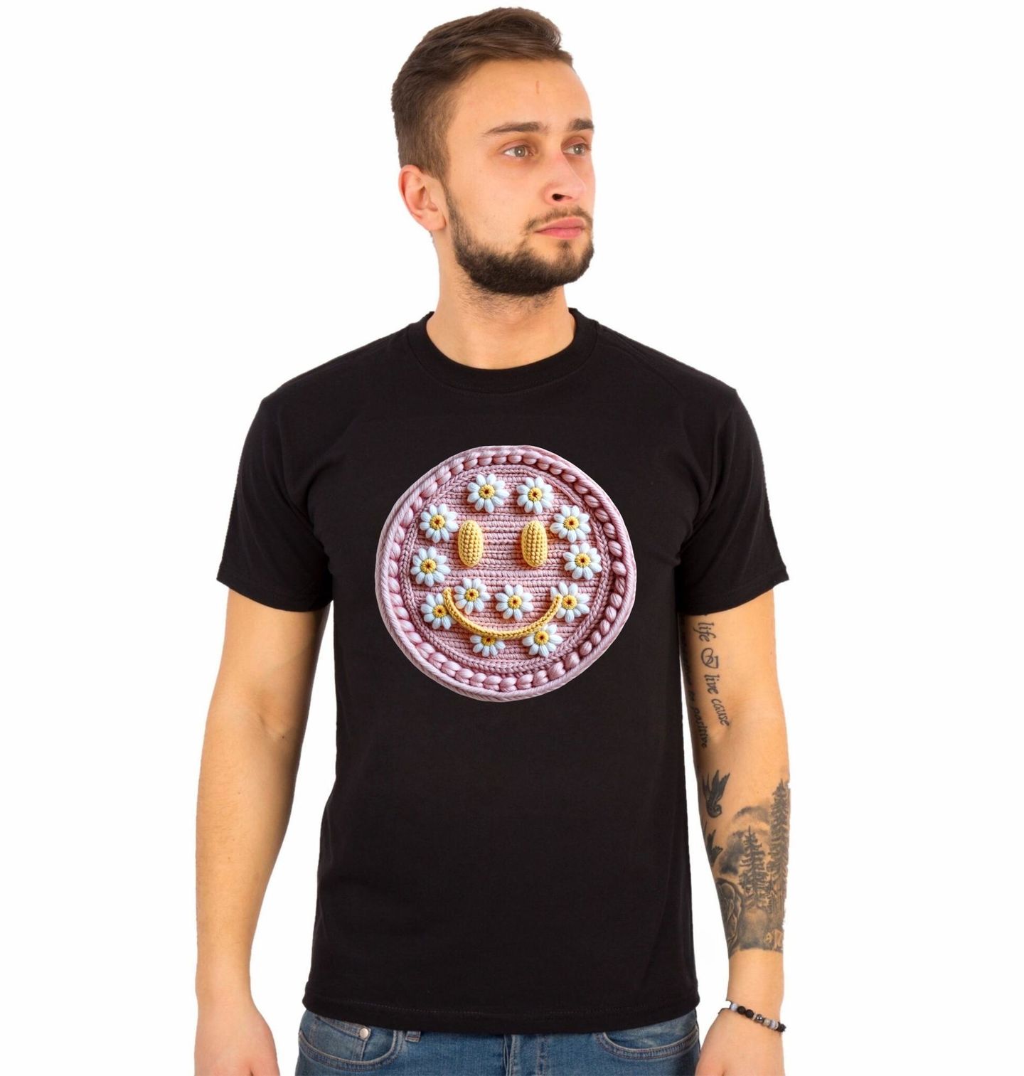 Pánské tričko Háčkovaný Květinový Smajlík
