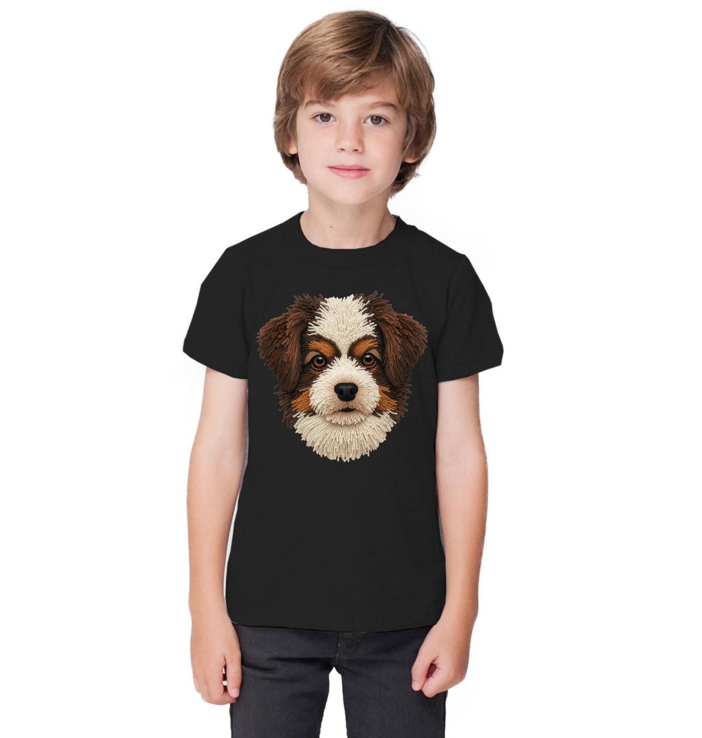 Dětské tričko Háčkovaný Miniaturní australský ovčák. Motiv je vytištěný potiskem – nejedná se o výšivku ani háčkovaný 3D prvek! Miniaturní australský ovčák je inteligentní a aktivní pes, který miluje pohyb i blízkost svého člověka. Detailní háčkovaný styl dodává designu jemnou texturu a jedinečný charakter, díky kterému potěší každého, pro koho je pes věrný parťák a kdo je hrdý pejskař.