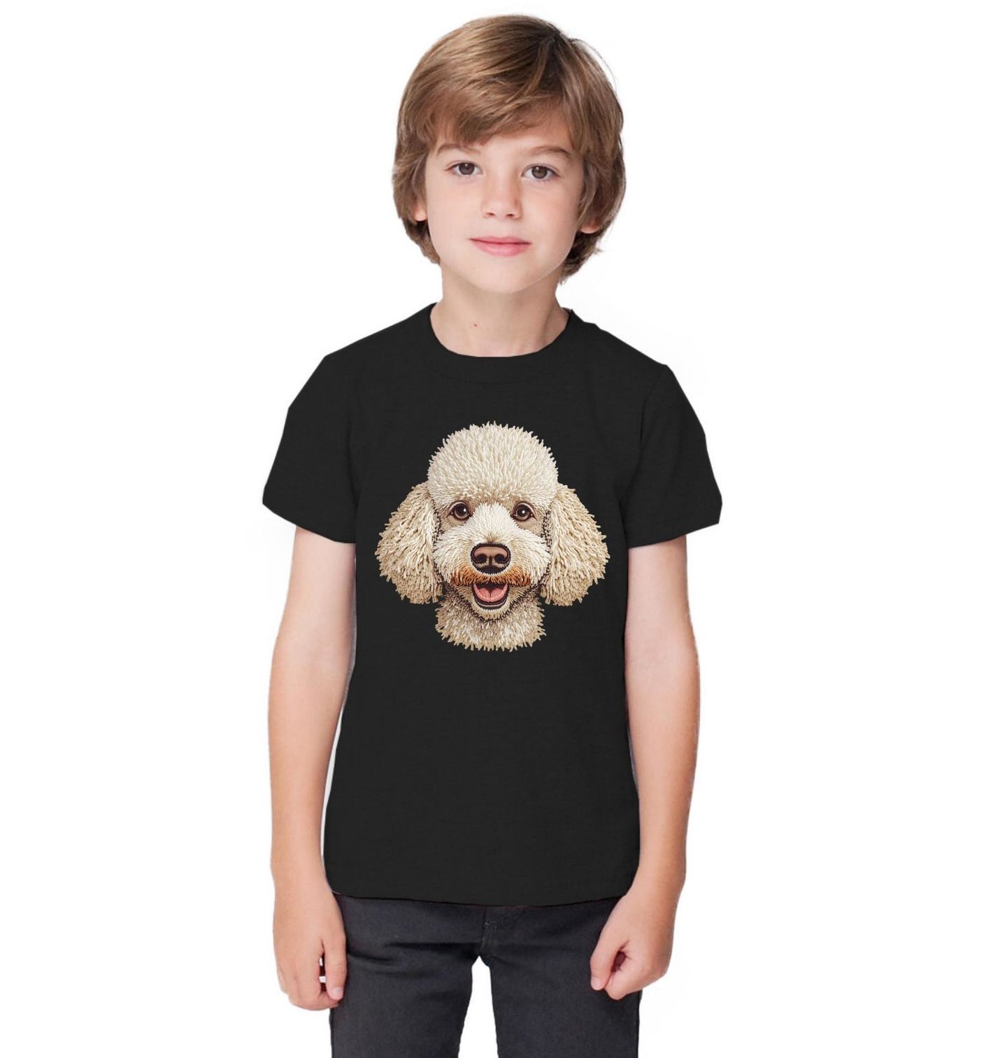 Dětské tričko Háčkovaný Pudl. Motiv je vytištěný potiskem – nejedná se o výšivku ani háčkovaný 3D prvek! Tento roztomilý pes působí hravě a přátelsky, takže je ideální volbou pro každého, kdo je hrdý pejskař a chce ukázat svou lásku ke čtyřnohým parťákům. Pudl je známý svou elegancí i inteligencí, a právě tyto vlastnosti motiv krásně vystihuje.