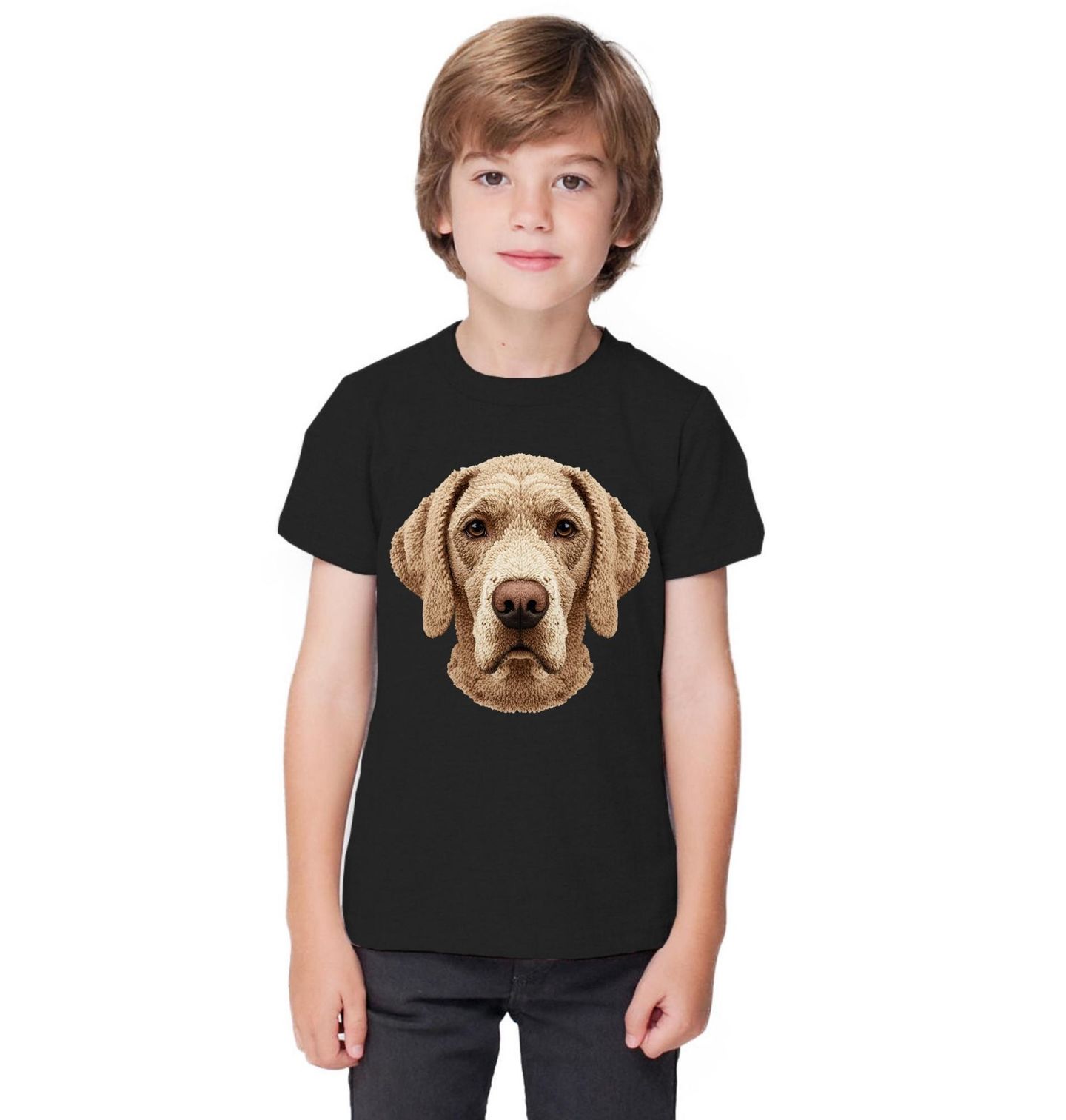 Dětské tričko Háčkovaný Výmarský ohař. Motiv je vytištěný potiskem – nejedná se o výšivku ani háčkovaný 3D prvek! Výmarský ohař je aktivní a oddaný pes, který vyniká inteligencí i silným poutem ke svému majiteli. Detailní háčkovaný styl dodává designu jemnou strukturu a jedinečný charakter. Skvělá volba pro každého, kdo je hrdý pejskař a chce ukázat, že pes je jeho věrný parťák na každý den.