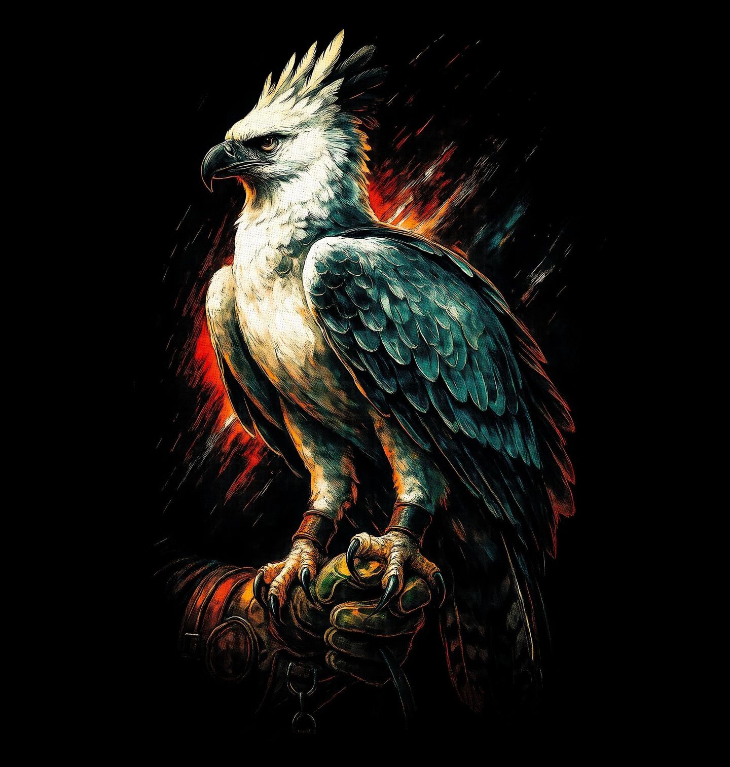 Pánská mikina Harpyje pralesní. Tento motiv zachycuje ptáka harpyji pralesní, jednoho z nejmohutnějších dravých orlů tropických deštných lesů Jižní Ameriky. Harpyje pralesní (Harpia harpyja) je symbol síly, ostražitosti a nezkrotné přírody. Detailní zpracování peří, výrazná chocholka a masivní pařáty dávají tomuto motivu jedinečný dramatický charakter.