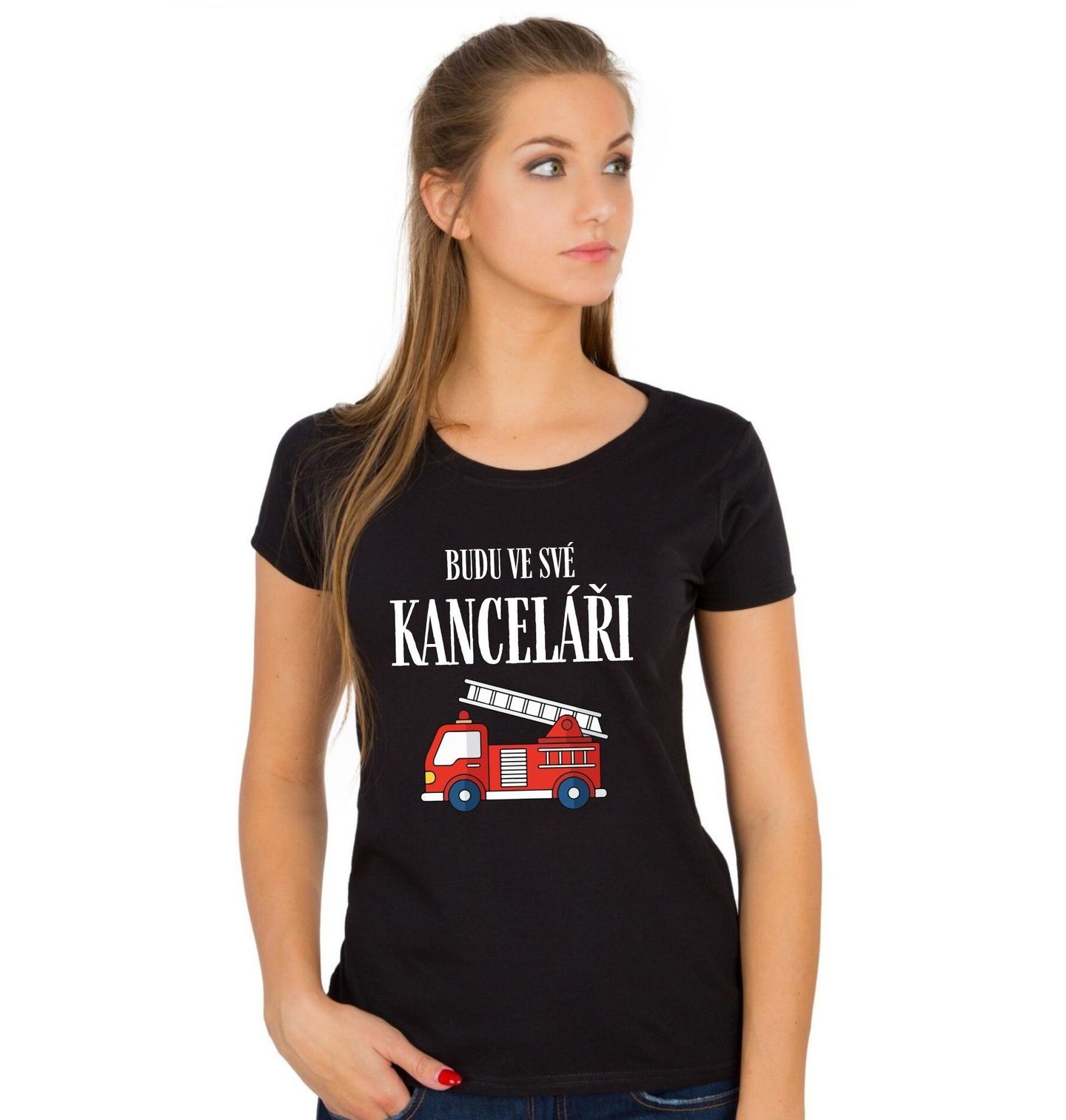 Dámské tričko Hasičský vůz Budu ve své kanceláři