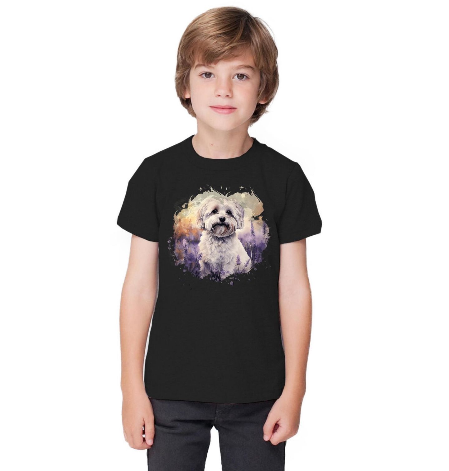 Dětské tričko Havanský psík v Levandulovém Poli. Romantický motiv s roztomilým Havanským psíkem, který odpočívá v levandulovém poli při západu slunce. Obraz vyzařuje klid, něhu a kouzlo venkova – přesně to, co každý pejskař a milovník psů ocení. Vhodný pro každého, komu pes není jen mazlíček, ale součást duše.