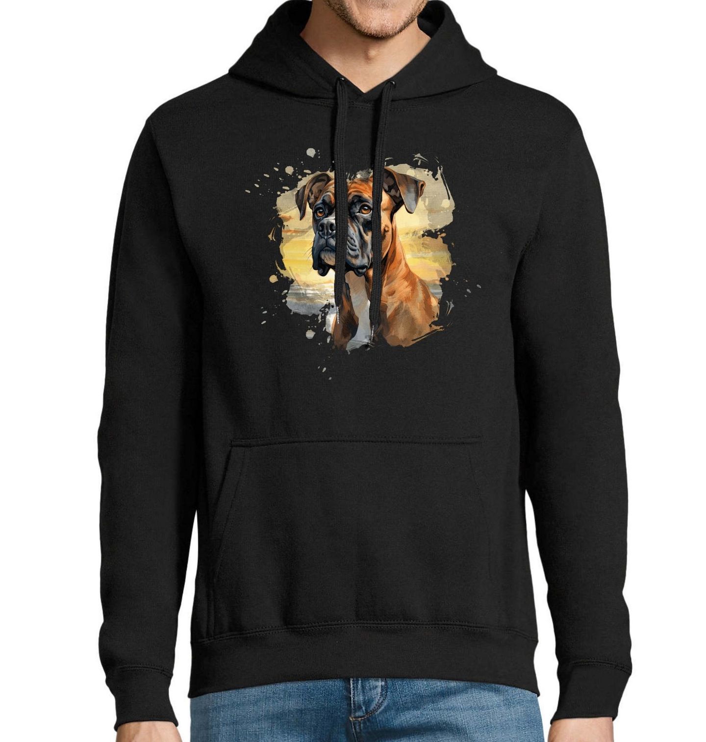 Pánská mikina Hlídač Německý boxer. Silný, hrdý a oddaný – právě takový je Německý boxer, pes, který dokáže být rovnocenným parťákem každému pejskaři. Tento motiv zachycuje boxera v tajemném světle zapadajícího slunce – připraveného chránit, bdít a milovat. Skvělý dárek pro každého, kdo ví, že pes je víc než zvíře – je to rodina.