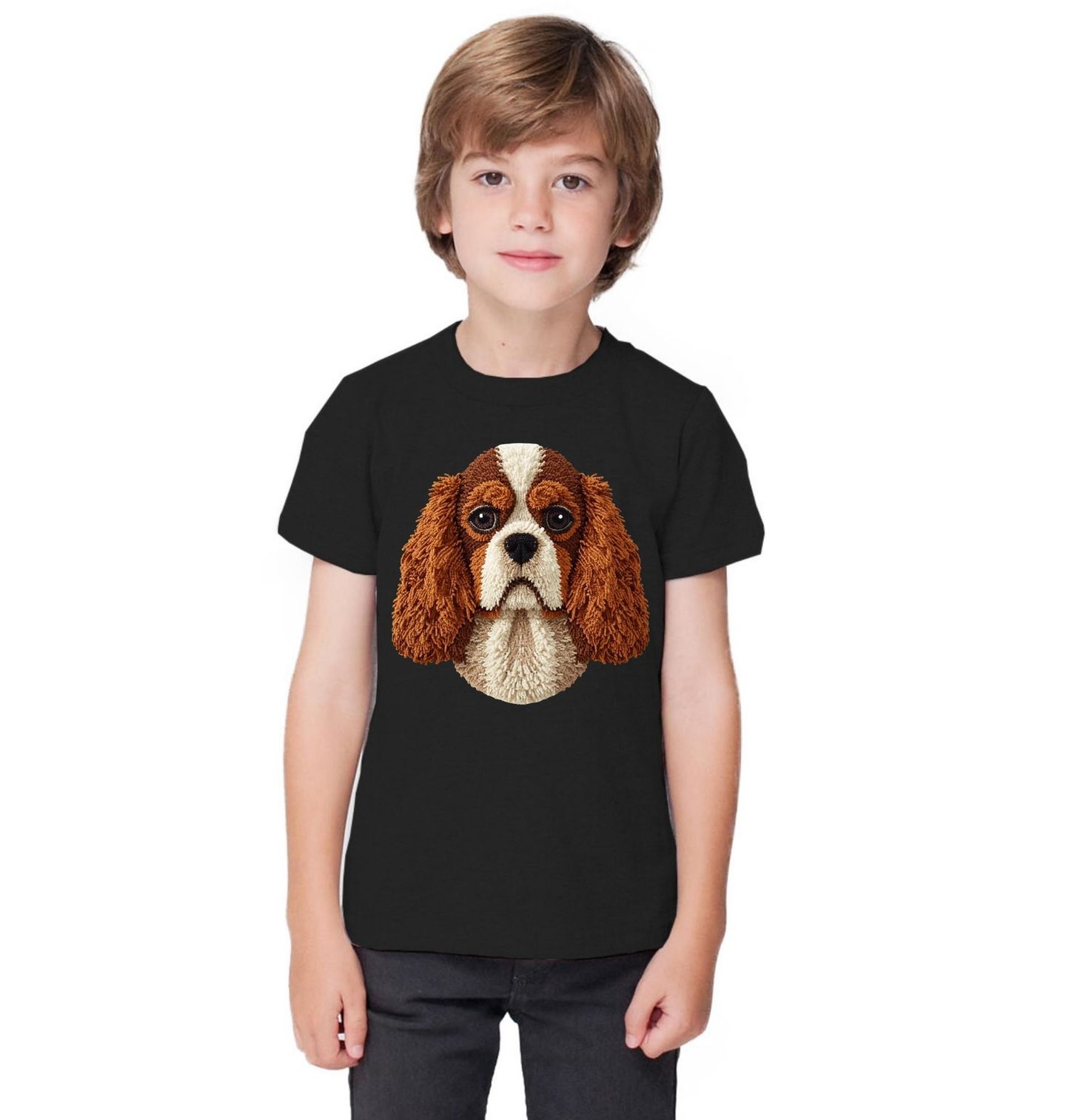 Dětské tričko Hnědý Háčkovaný Kavalír king charles španěl. Motiv je vytištěný potiskem – nejedná se o výšivku ani háčkovaný 3D prvek! Tento pes je symbolem elegance, oddanosti a radosti ze života, a právě proto se hodí jako stylový doplněk pro každého, kdo miluje čtyřnohé parťáky. Grafika působí moderně a zároveň hravě, takže vynikne při každodenním nošení i jako originální dárek. Každý pejskař ocení motiv, který ukazuje, že pes není jen zvíře, ale skutečný člen rodiny.