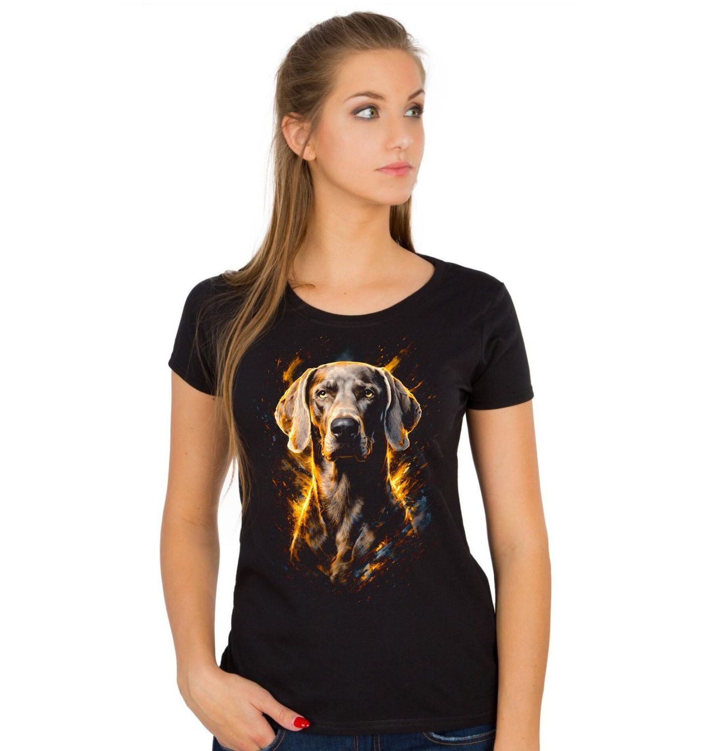 Dámské tričko Hnědý Výmarský ohař. Tento stylový motiv zachycuje plemeno Výmarský ohař, které je známé svou elegancí, inteligencí a ušlechtilým vzhledem. Typická stříbřitě šedá srst, dlouhé uši a pronikavý pohled dělají z tohoto plemene jedinečného společníka. Každý pejskař ocení jeho noblesu i energii. Výmarský ohař je aktivní a oddaný pes, který miluje pohyb a úzký kontakt se svým majitelem.