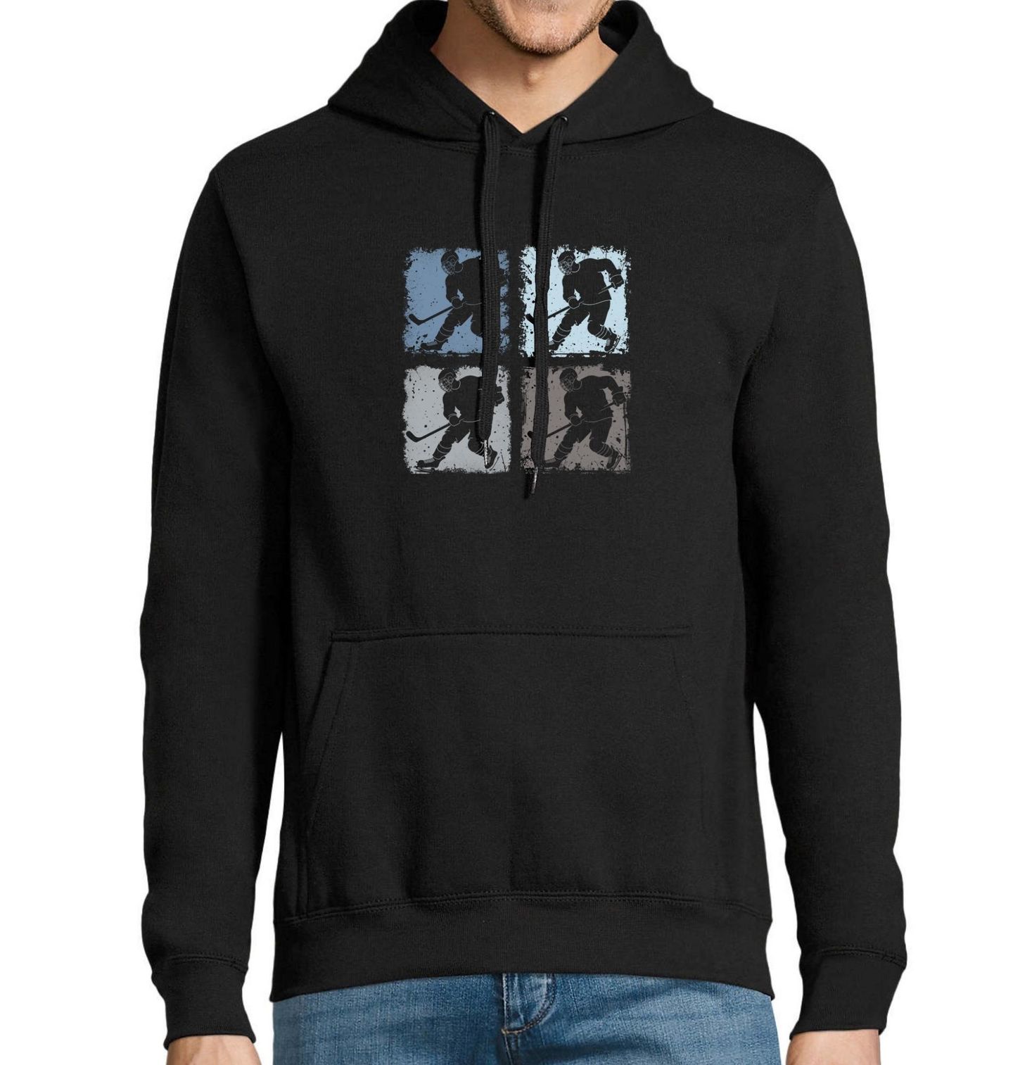 Pánská mikina Hokejisté na Ledě. Tento originální design spojuje sílu a styl – čtyři siluety hokejisty v různých odstínech vytvářejí moderní poctu legendárnímu kolektivnímu sportu. Ať už jsi fanoušek, hráč, nebo prostě miluješ hokej, tenhle motiv tě vtáhne zpět na led.