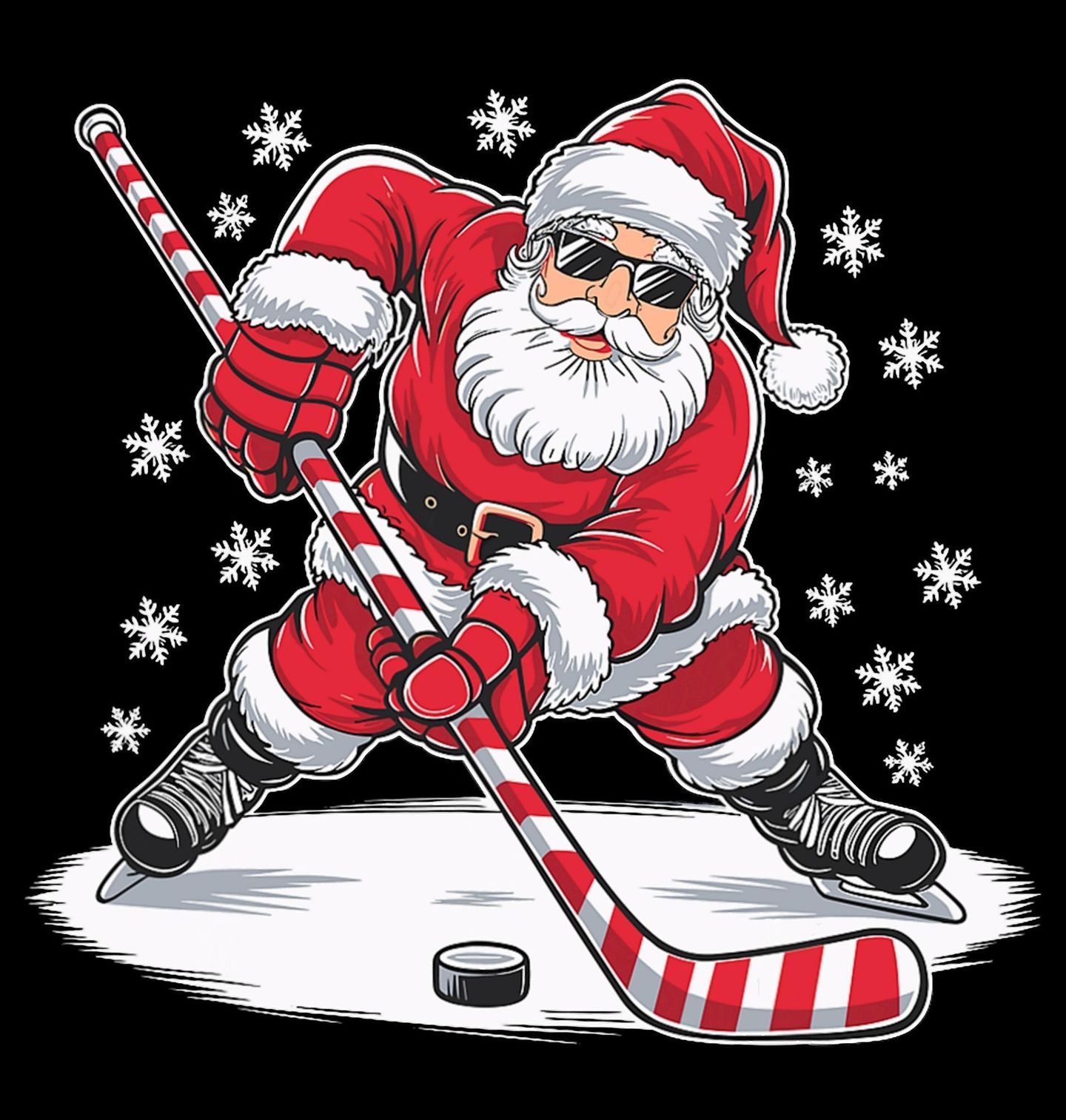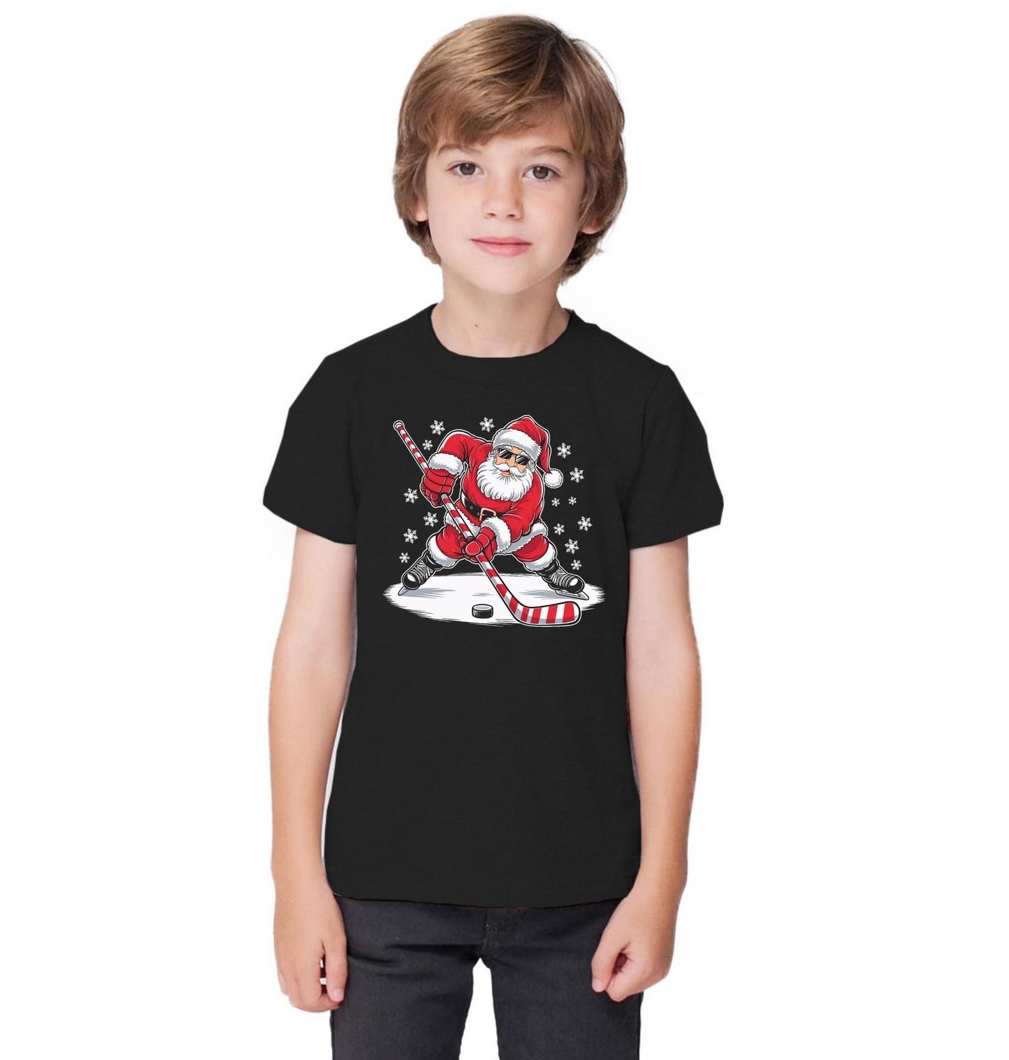Dětské tričko Hokejový Útočík Santa. Tento motiv zachycuje Santa Clause s hokejkou v ruce a pukem před sebou, připraveného na pořádný útok. Perfektní volba pro každého fanouška zimních sportů, který ví, že hokej a Vánoce jdou skvěle dohromady.