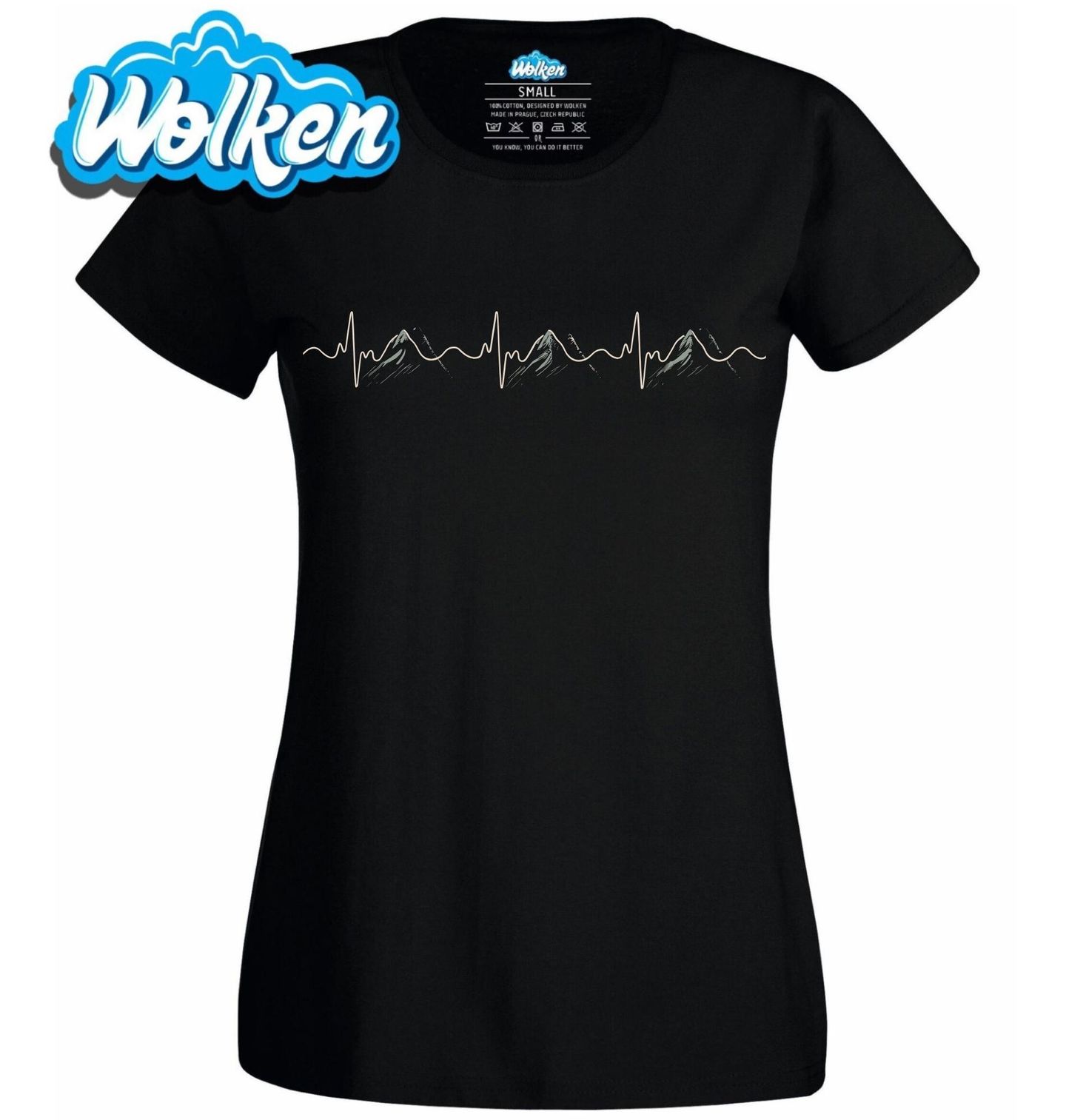 Dámské tričko Horský Kardiogram. Kardiogram v kombinaci s linií horských štítů vystihuje srdce každého milovníka přírody. Siluety hor se plynule prolínají s rytmem srdečního tepu a vytvářejí obraz vášně, klidu i dobrodružství. Tento design symbolizuje spojení s přírodou, touhu po výškách a radost z každého kroku v horském terénu.