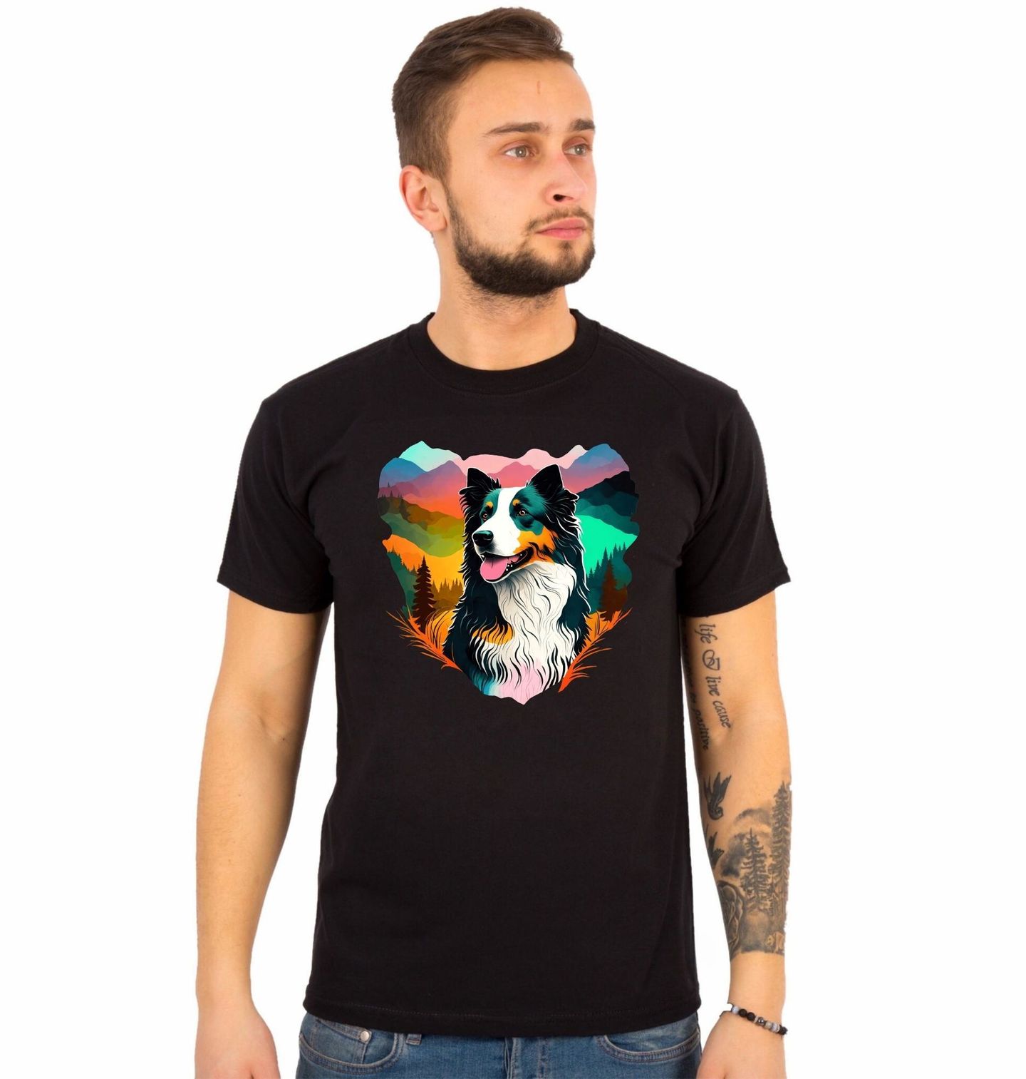 Pánské tričko Horský Pes Australský ovčák. Tento pes ovčák v barevném horském prostředí rozzáří šatník každého milovníka psů. Precizně vyvedený umělecký styl v kombinaci s pestrou krajinou osloví každého pejskaře, který ví, co znamená svoboda a přátelství.