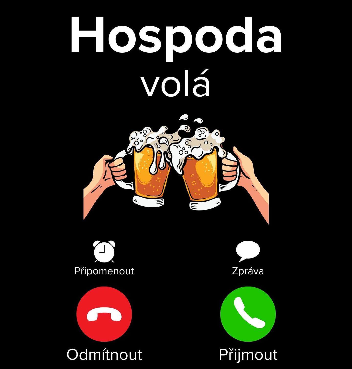 Dámské tričko Hospoda volá Phone Call. Vtipný a trefný motiv pro každého, kdo ví, že nejlepší hovory přichází z hospody. Dva půllitry v přípitku a ikonické rozhraní příchozího hovoru jasně říkají jediné – párty může začít. Tento motiv je perfektní volbou na oslavy, rozlučky, večírky i běžné posezení s partou, kteřá nikdy neodmítne dobré pivo.