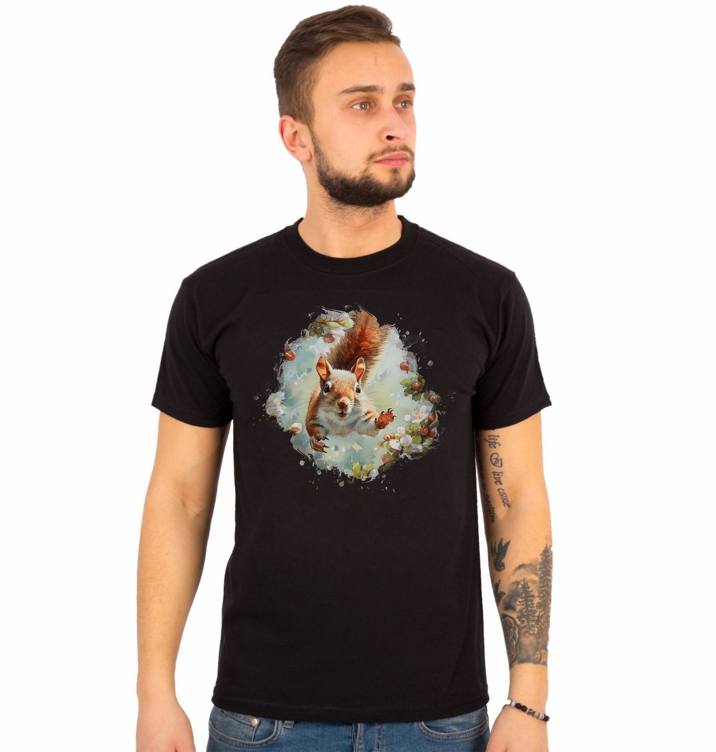 Pánské tričko Hravá Veverka v Lese. Veverka je symbolem hravosti, energie a spojení s přírodou. Motiv je ideální pro milovníky lesa, zvířat a jemného ilustrativního stylu, který působí hřejivě a pozitivně. Skvěle se hodí jako dekorace do interiéru, dárek pro děti i dospělé nebo pro každého, kdo má blízko k přírodě. Design vnese do prostoru kouzlo lesa, lehkost a úsměv – jako malý pohled do světa, kde vládne klid a radost.