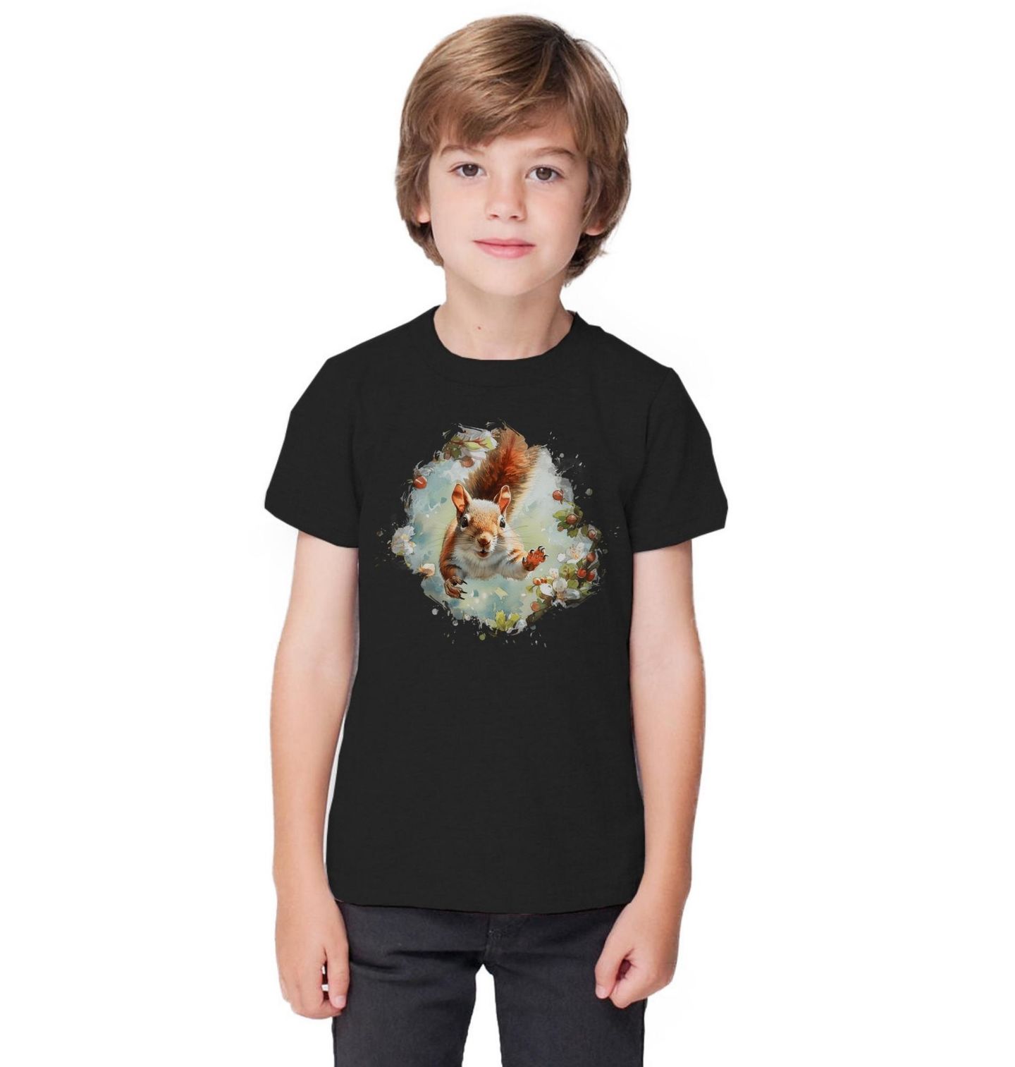 Dětské tričko Hravá Veverka v Lese. Veverka je symbolem hravosti, energie a spojení s přírodou. Motiv je ideální pro milovníky lesa, zvířat a jemného ilustrativního stylu, který působí hřejivě a pozitivně. Skvěle se hodí jako dekorace do interiéru, dárek pro děti i dospělé nebo pro každého, kdo má blízko k přírodě. Design vnese do prostoru kouzlo lesa, lehkost a úsměv – jako malý pohled do světa, kde vládne klid a radost.