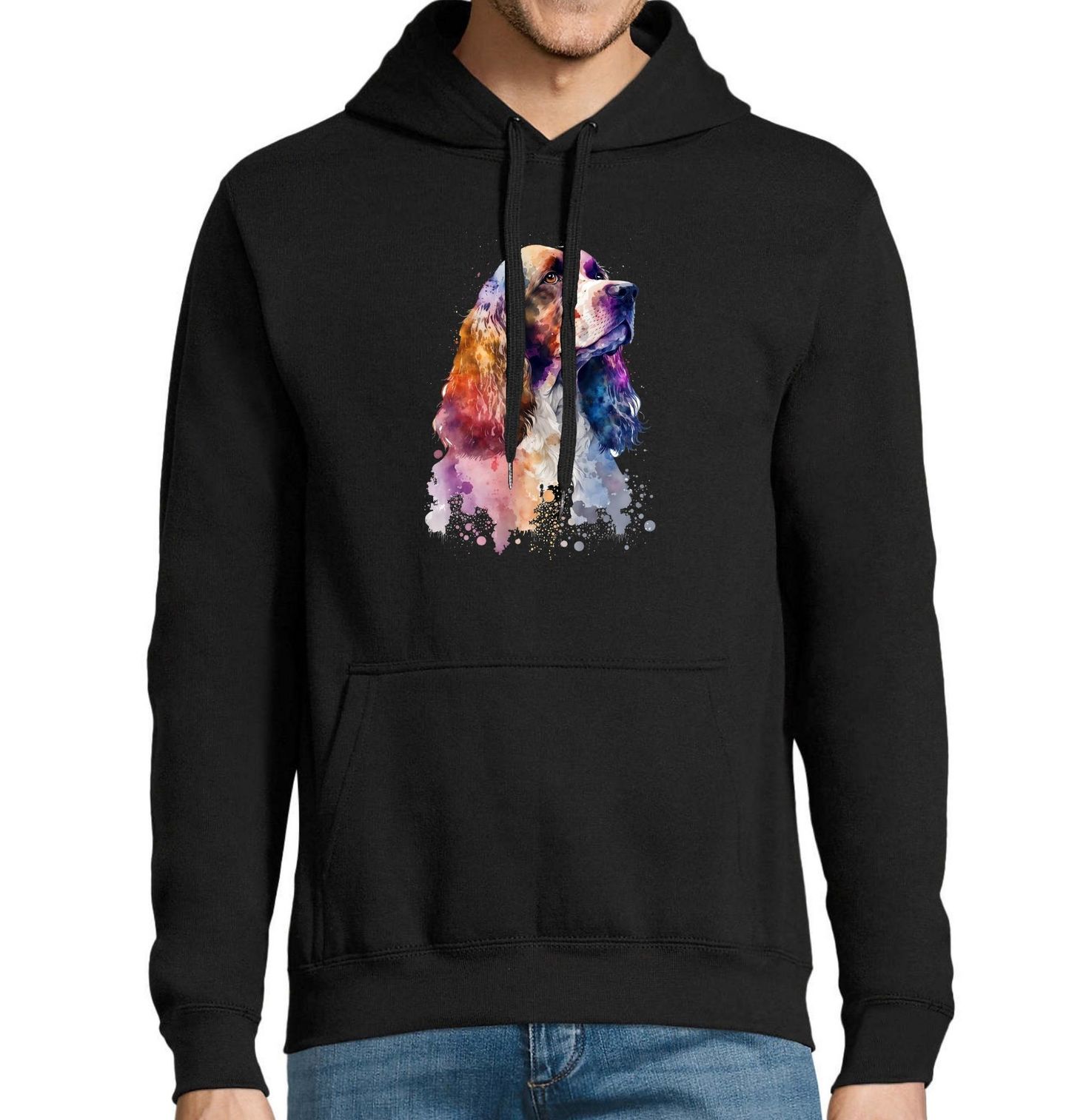 Pánská mikina Hrdý Anglický kokršpaněl. Ukaž světu svou lásku ke čtyřnohým společníkům s tímto uměleckým motivem, kde dominuje Anglický kokršpaněl. Tento pes, známý svou přátelskou povahou a věrným srdcem, je zde zachycen v dechberoucích barvách, které nadchnou každého pejskaře.