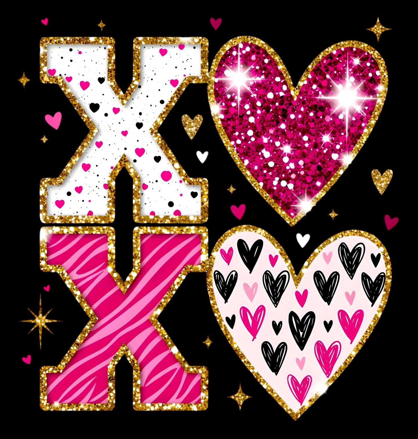 Pánské tričko Hugs and Kisses XOXO. Tento romantický motiv s nápisem XOXO a dvěma třpytivými srdíčky je jako stvořený pro všechny, kdo milují srdce a Valentýn. Výraz XOXO znamená v angličtině „hugs and kisses“ – tedy objetí a polibky. Perfektní dárek pro partnera, partnerku, kamarádku nebo kohokoliv, komu chcete říct, že láska je to nejdůležitější.