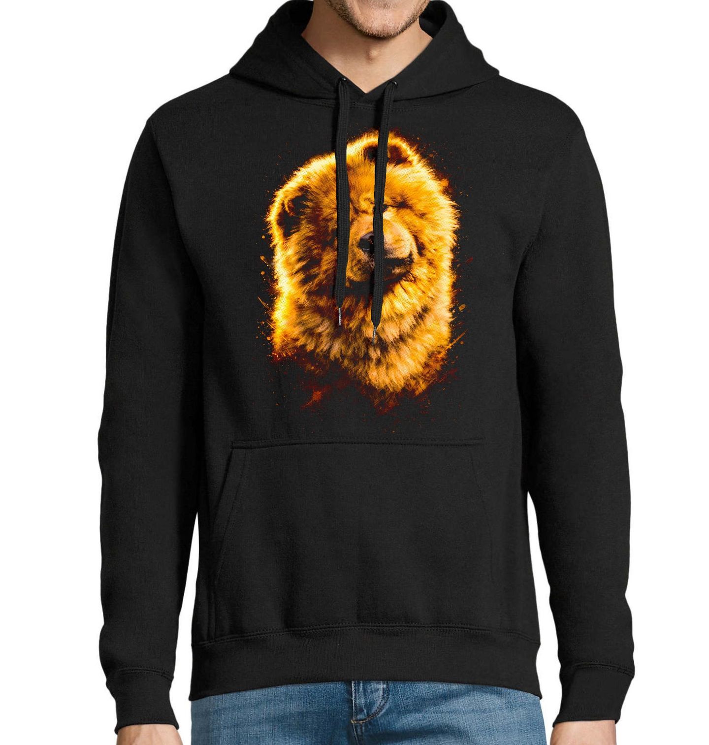 Pánská mikina Huňatý Chow Chow. Tento výrazný motiv zachycuje ikonického psa plemene chow chow, který je známý svou hustou, huňatou srstí a typickým „medvídkovým“ vzhledem. Tento pes působí majestátně a zároveň roztomile, což z něj dělá jedinečné plemeno mezi psy. Každý pejskař ocení detailní zpracování srsti a výraznou zlatavou barevnost, která dodává motivu energii a styl. Chow chow je známý svou nezávislou, klidnou povahou a silným charakterem.