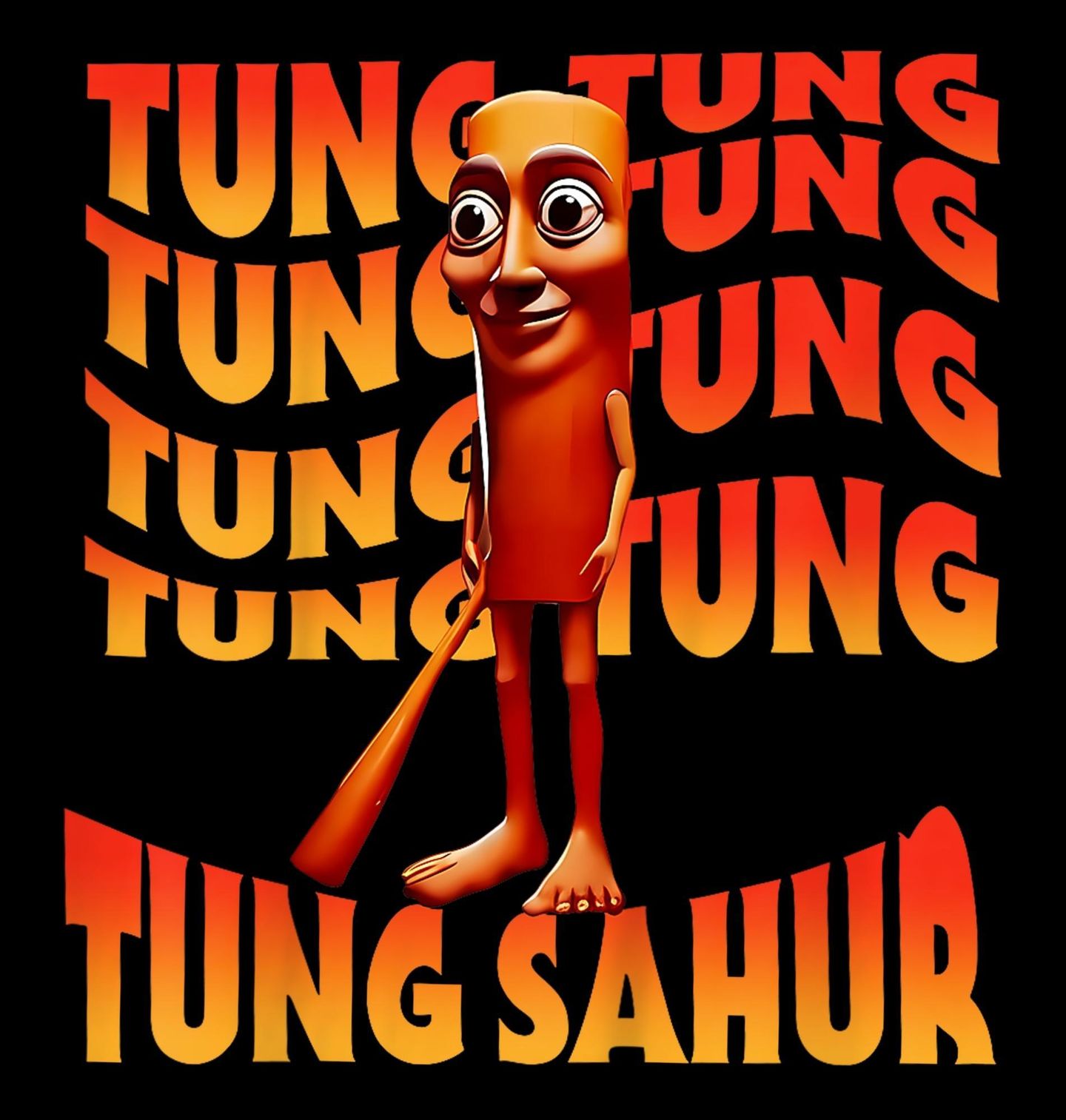 Dětské tričko Hypnotický Tung Tung Tung Sahur. Vstup do hypnotického světa, kde se opakuje jen jedno slovo: TUNG. Tahle grafika je manifestem toho, co znamená italský brainrot v roce 2025: surreální postava s pálkou, výraz plný odevzdanosti a text, který opakuje tung tung tung sahur, dokud se ti nezaryje do mozku.