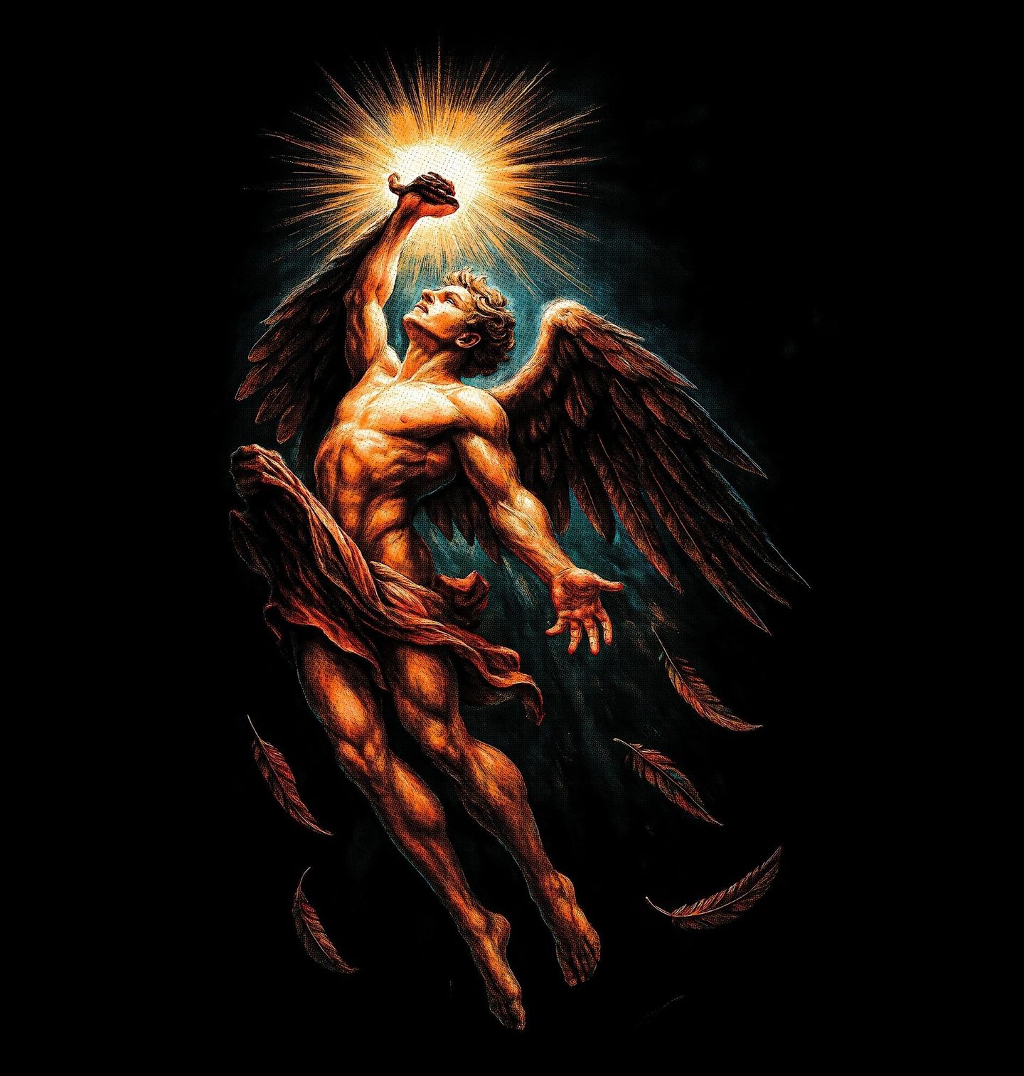 Dámské tričko Íkaros Příliš Blízko Slunci. Podle příběhu, který vypráví řecká mytologie, si Íkaros spolu se svým otcem Daidalem vyrobil křídla z peří a vosku, aby unikli z Kréty. Přes varování však vzlétl příliš vysoko, slunce vosk roztavilo a on se zřítil do moře. Stal se symbolem odvahy, svobody i lidské pýchy. Řecká mytologie vypráví jeho příběh jako varování před pýchou, ale také jako oslavu lidské odvahy snít a vzlétnout.