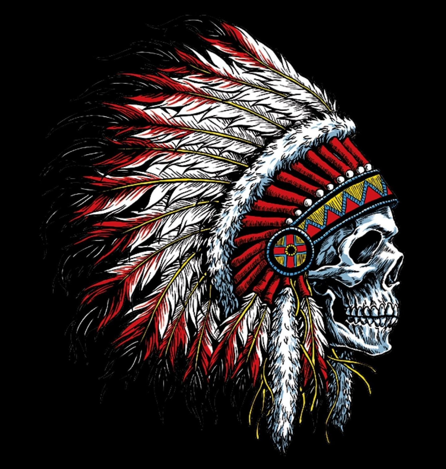 Dámské tričko Indiánská lebka. Tajemná indiánská lebka s nádhernou kombinací barev pro nevšední dny. Není člověk, koho by lebka nezhypnotizovala. S tímto tričkem rozhodně vynikneš!